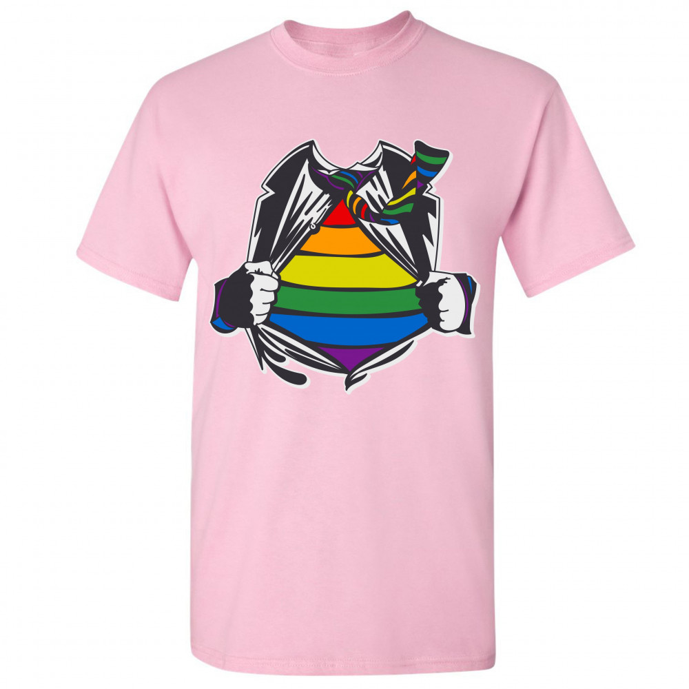 GAY SUPERHERO PARODY t-shirt lesbian bi transgender pride rainbow men's tee light pink