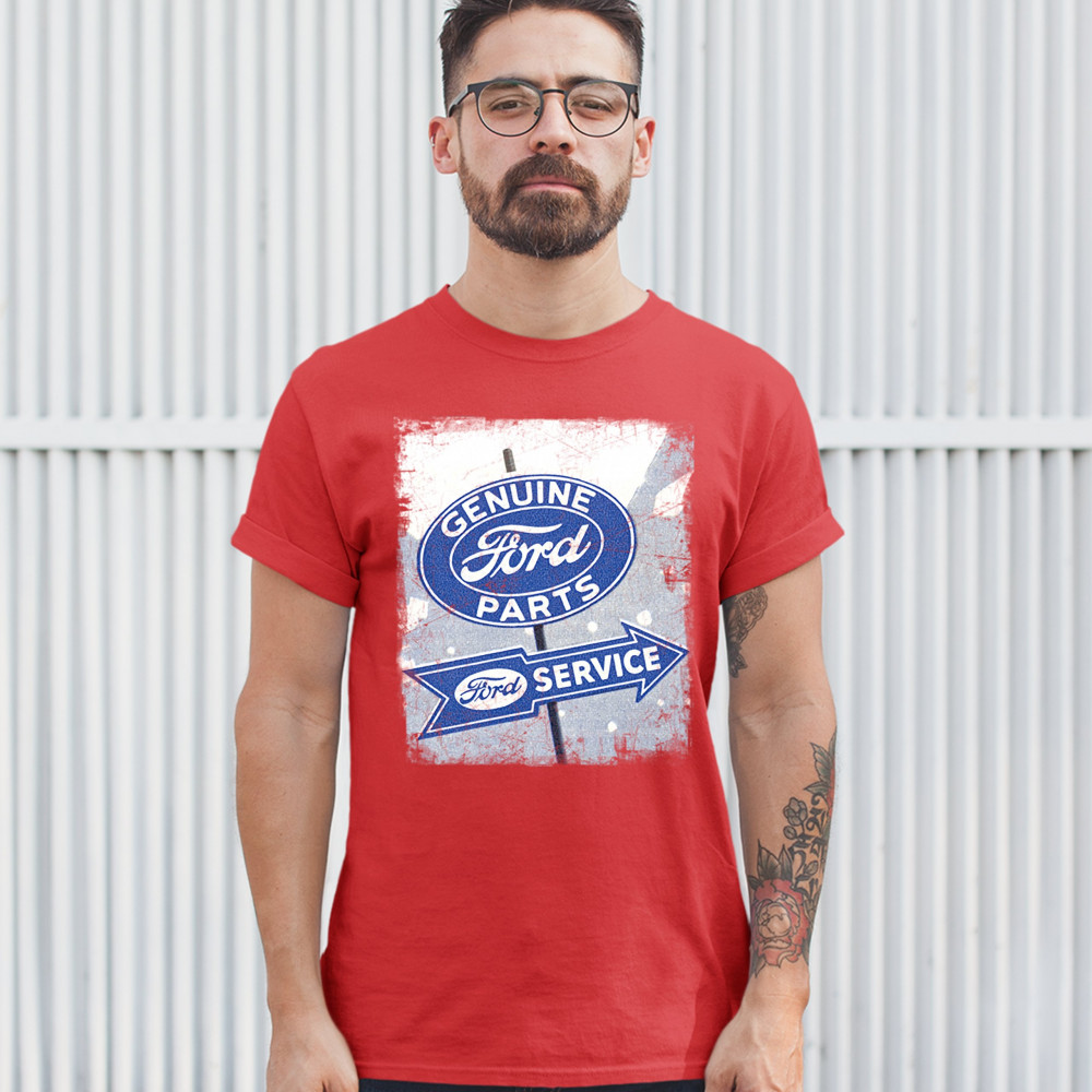 GENUINE FORD PARTS t-shirt high performance american made licensed men's tee red