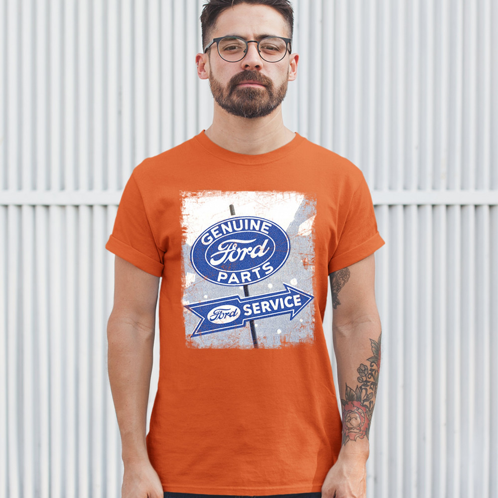GENUINE FORD PARTS t-shirt high performance american made licensed men's tee orange