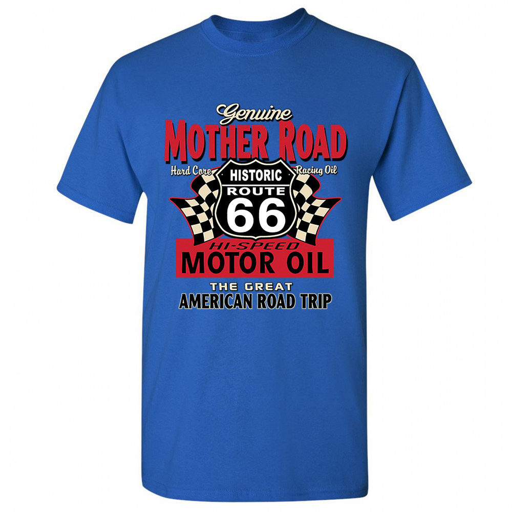 GENUINE MOTHER ROAD HISTORIC ROUTE 66 t-shirt american road trip men's tee royal blue