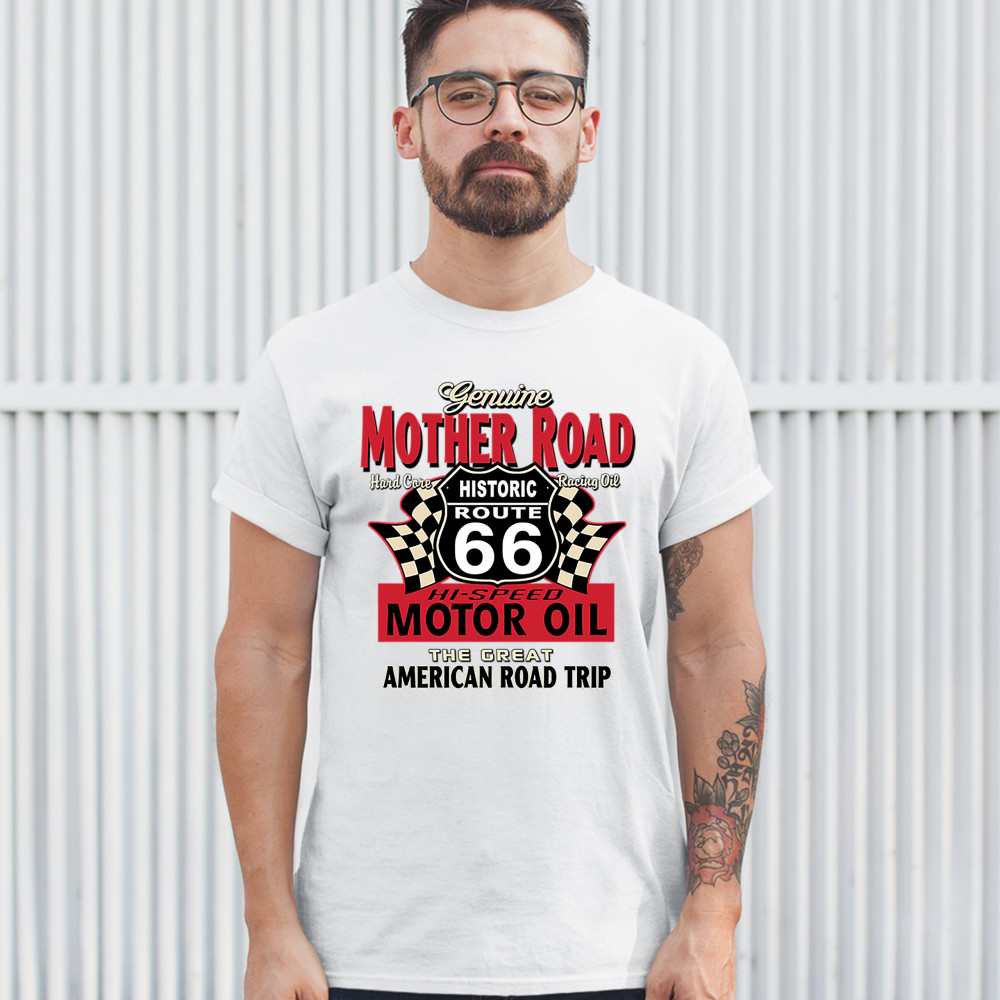 GENUINE MOTHER ROAD HISTORIC ROUTE 66 t-shirt american road trip men's tee white