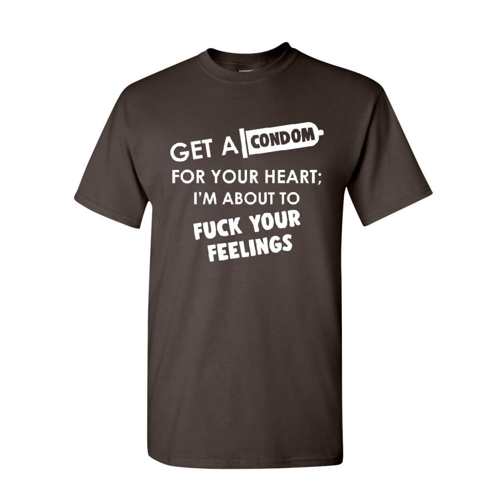 GET A CONDOM FOR YOUR HEART t-shirt funny rude offensive humor mens tee shirt brown