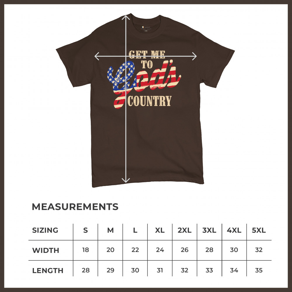 Bold patriotic faith shirt featuring USA flag text. Great for rural life, Christian pride, believers, and country-loving Americans.