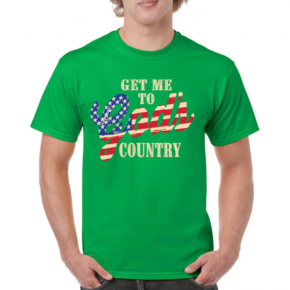 Bold patriotic faith shirt featuring USA flag text. Great for rural life, Christian pride, believers, and country-loving Americans.