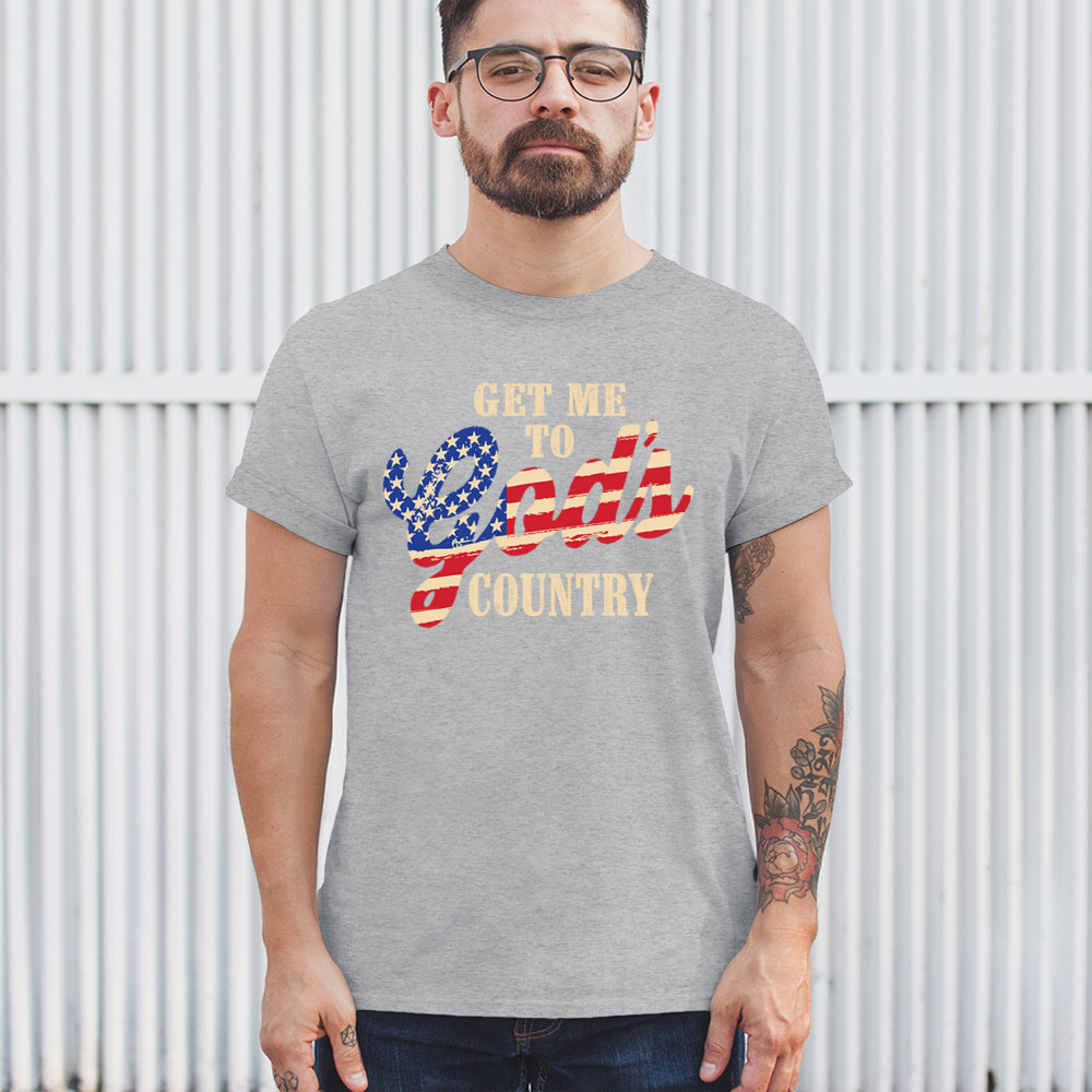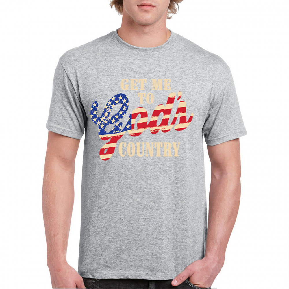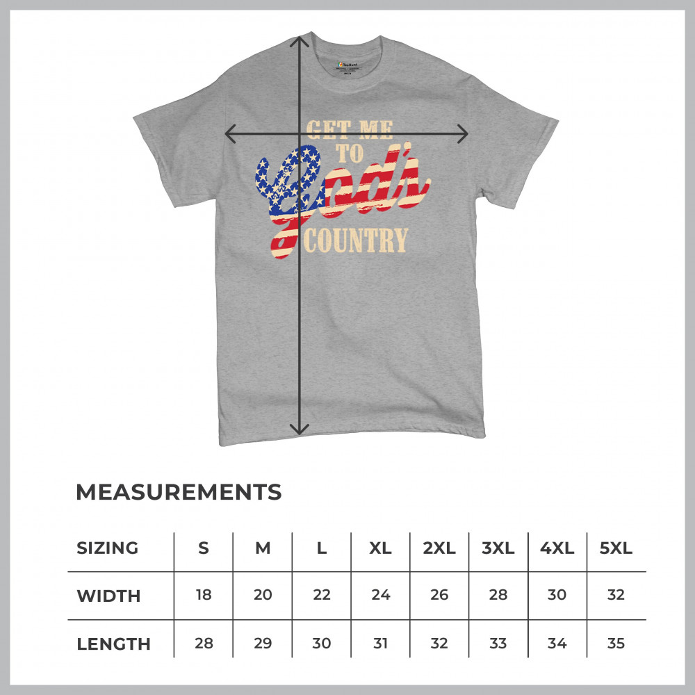 Bold patriotic faith shirt featuring USA flag text. Great for rural life, Christian pride, believers, and country-loving Americans.