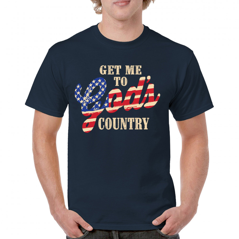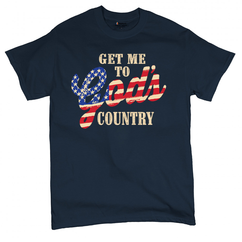 Bold patriotic faith shirt featuring USA flag text. Great for rural life, Christian pride, believers, and country-loving Americans.