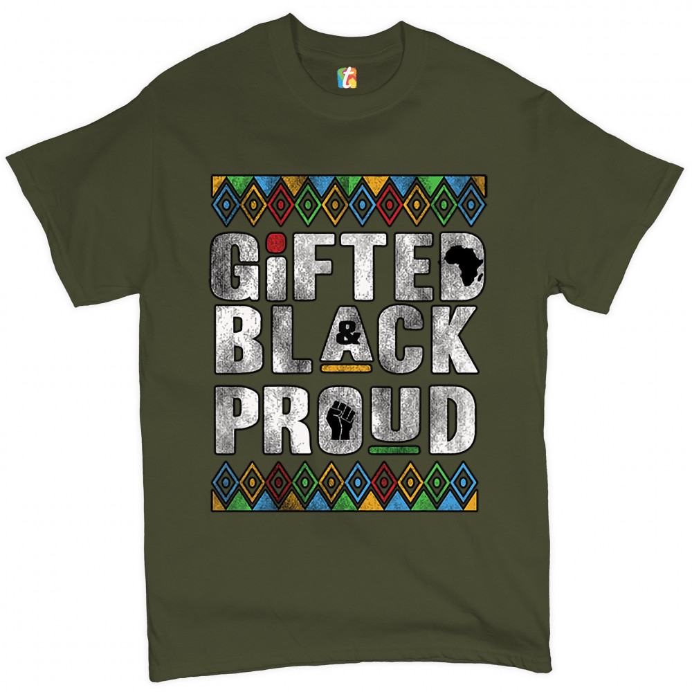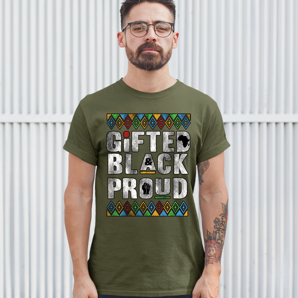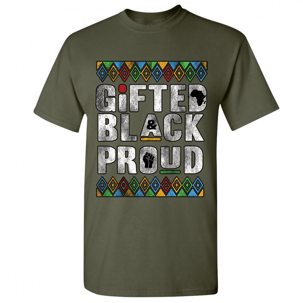 GIFTED BLACK & PROUD t-shirt african american black lives matter men's tee military green