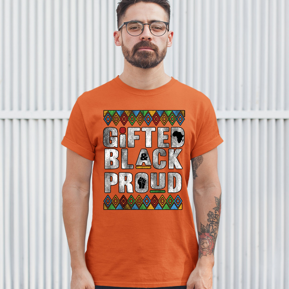 GIFTED BLACK & PROUD t-shirt african american black lives matter men's tee orange