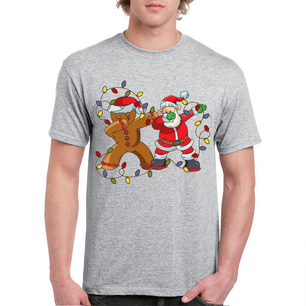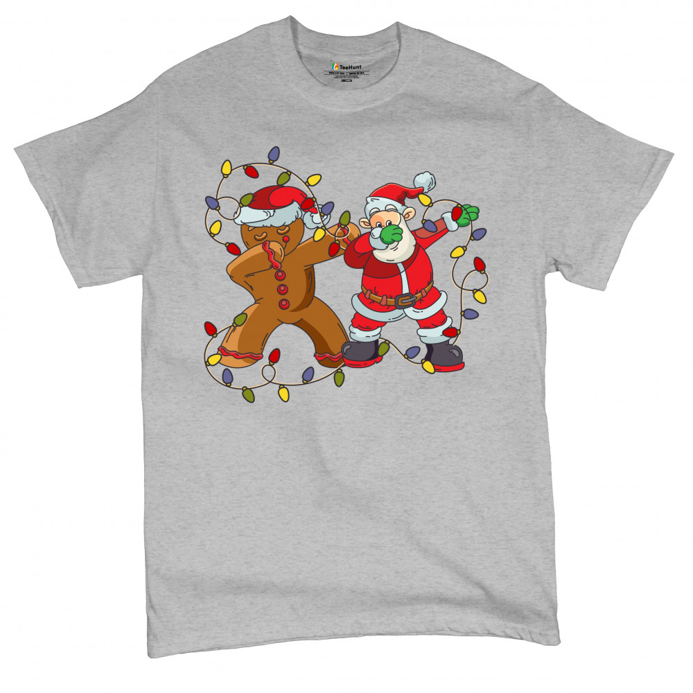 GINGERBREAD MAN AND SANTA CLAUS DAB DANCE t-shirt merry christmas men's tee gray