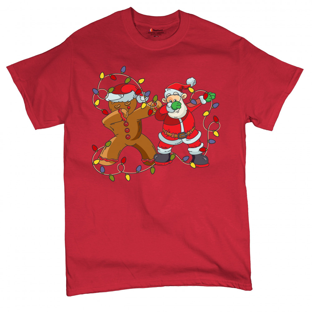 GINGERBREAD MAN AND SANTA CLAUS DAB DANCE t-shirt merry christmas men's tee red