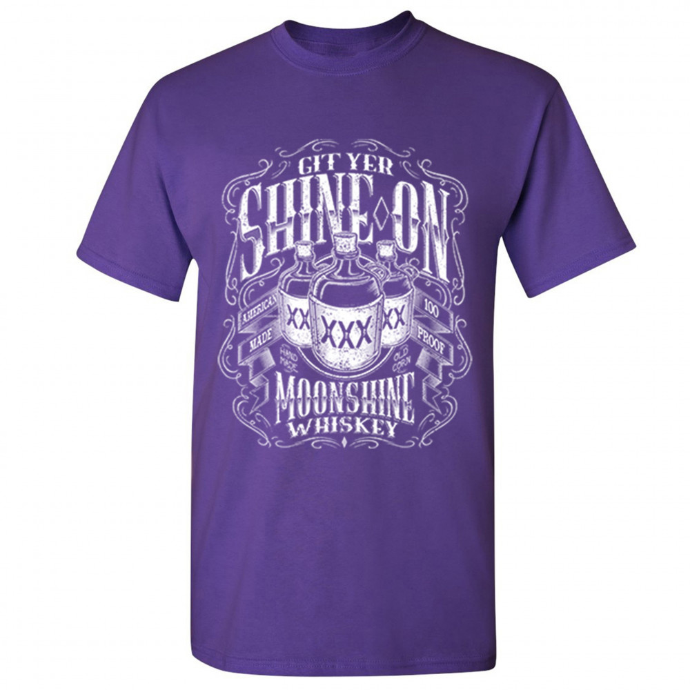 GIT YER SHINE ON MOONSHINE WHISKEY t-shirt xxx mason jars drinking men's tee purple