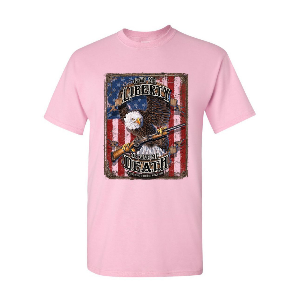 GIVE ME LIBERTY OR GIVE ME DEATH t-shirt eagle defend freedom 2a mens tee shirt light pink