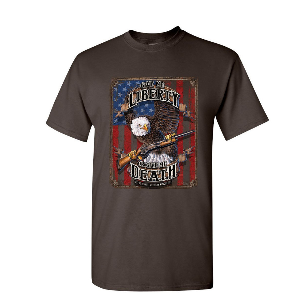 GIVE ME LIBERTY OR GIVE ME DEATH t-shirt eagle defend freedom 2a mens tee shirt brown