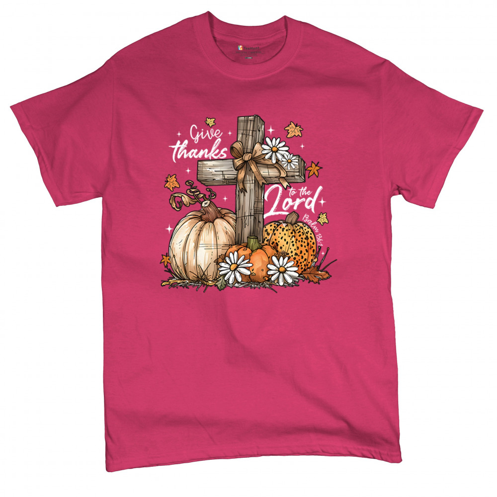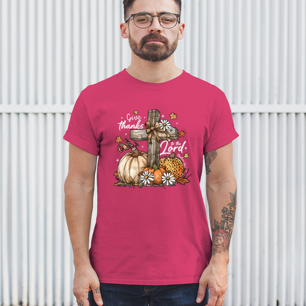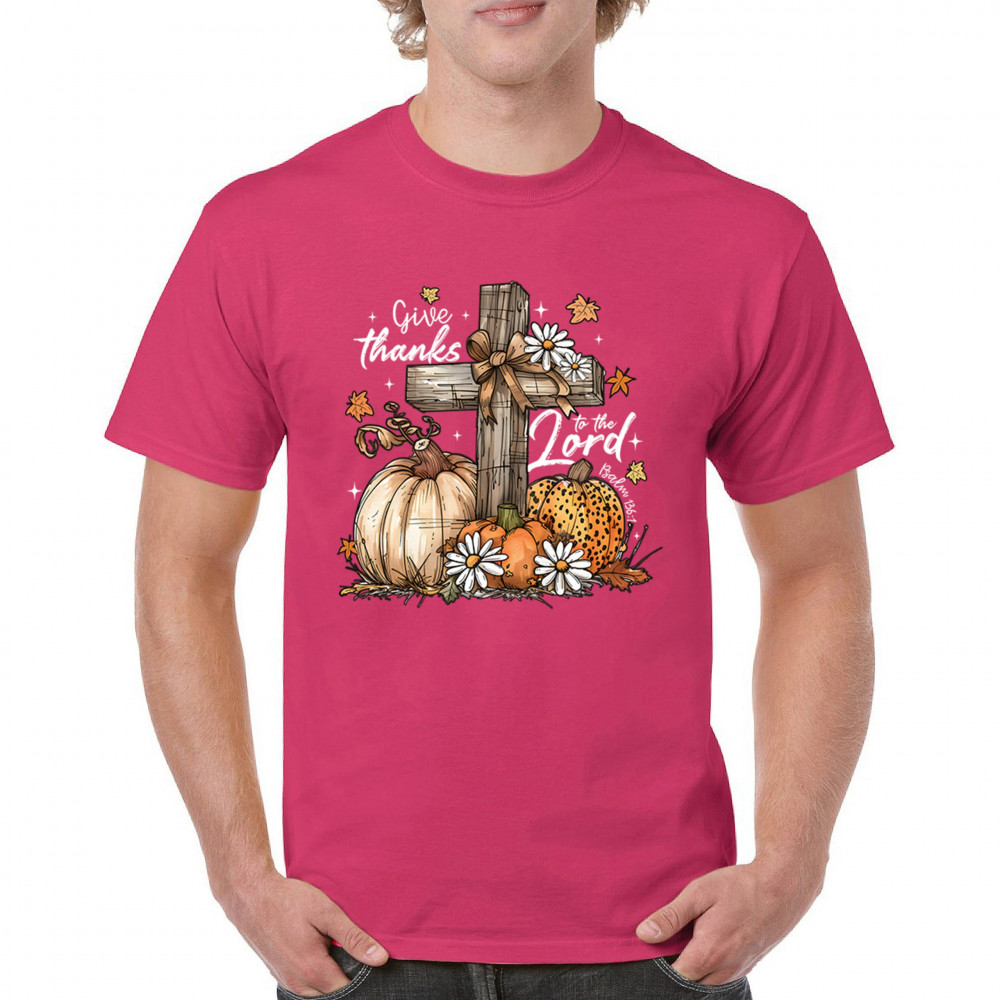 Thanksgiving design with pumpkins, daisies, and rustic cross. Perfect for Turkey Day, faithful family gatherings, and fall festival blessings.