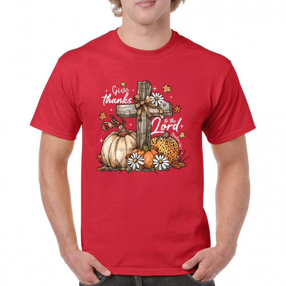 Thanksgiving design with pumpkins, daisies, and rustic cross. Perfect for Turkey Day, faithful family gatherings, and fall festival blessings.