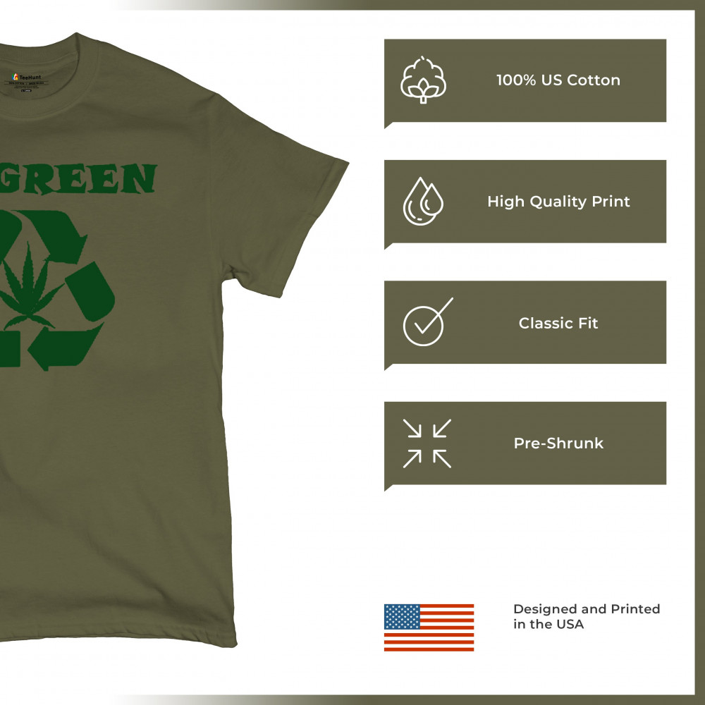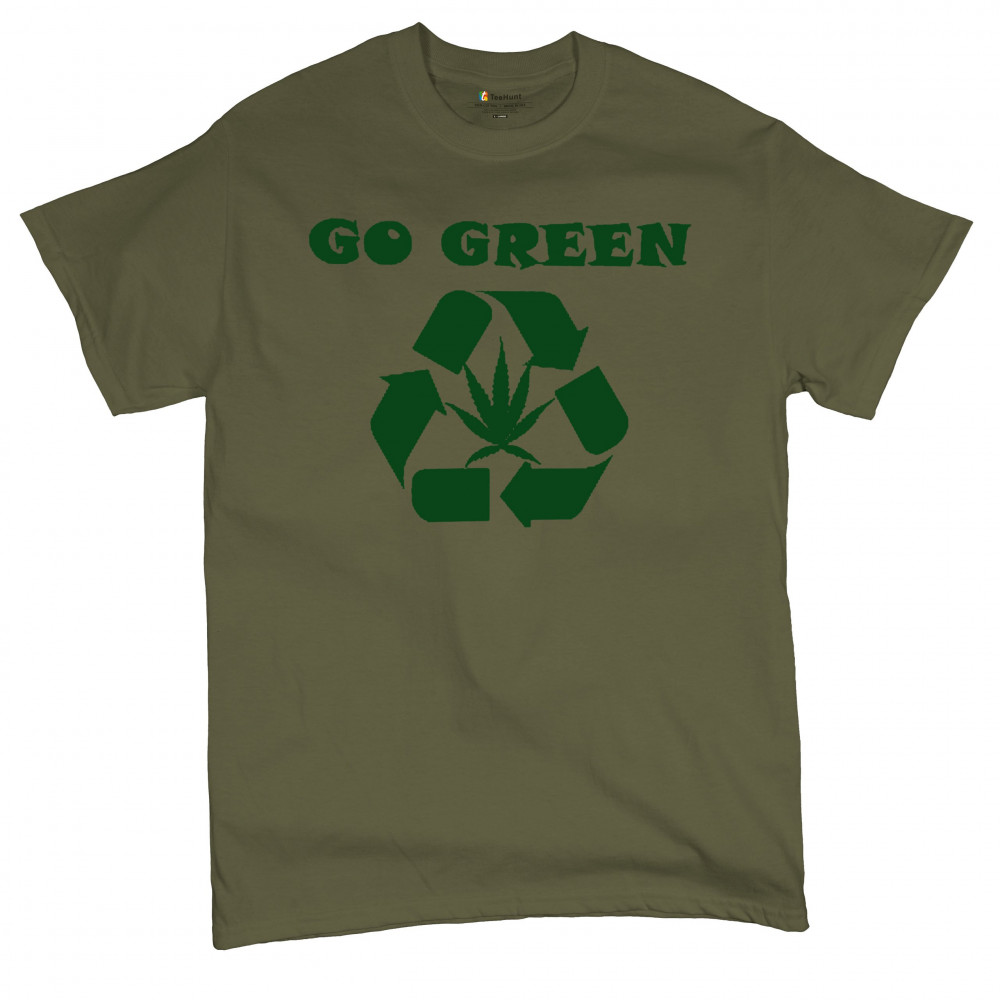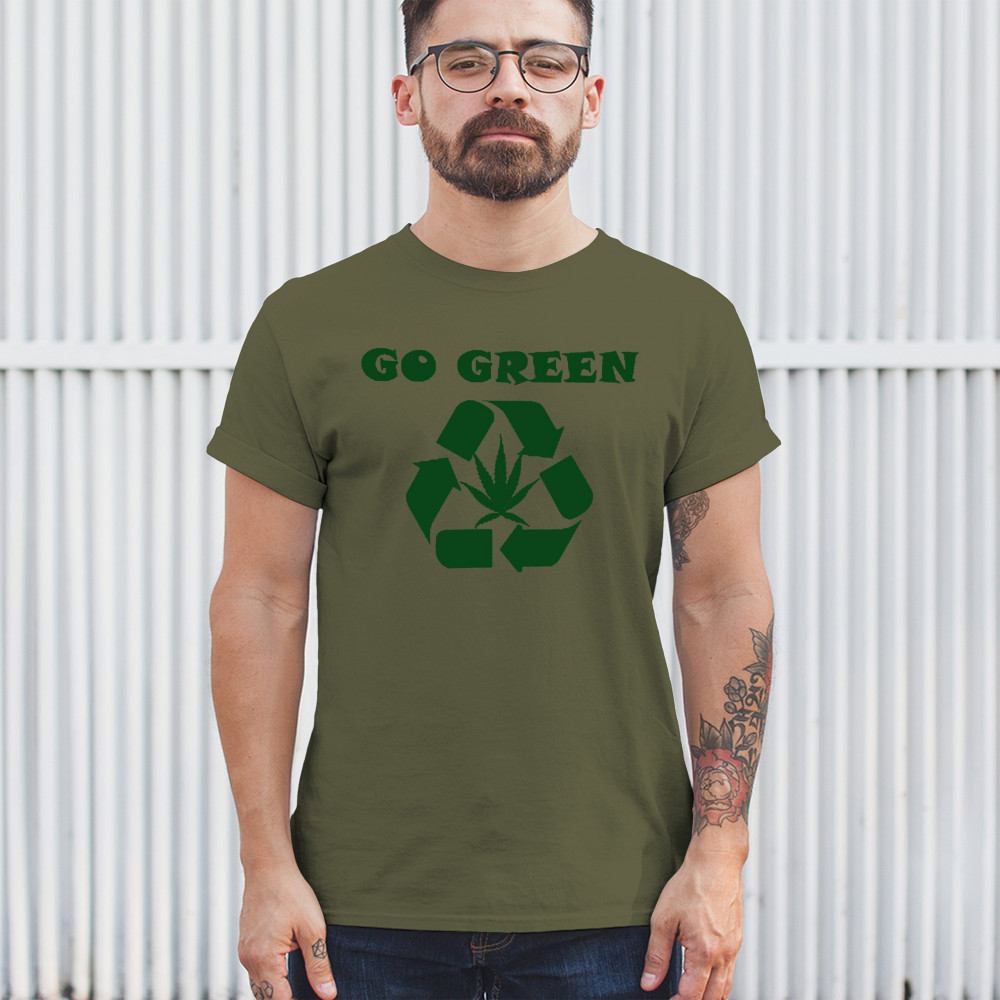 "Go Green" design combining a recycling symbol with a cannabis leaf. Perfect for those who love Mary Jane, sustainable living, and stoned humor.