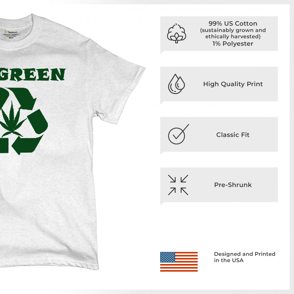 "Go Green" design combining a recycling symbol with a cannabis leaf. Perfect for those who love Mary Jane, sustainable living, and stoned humor.
