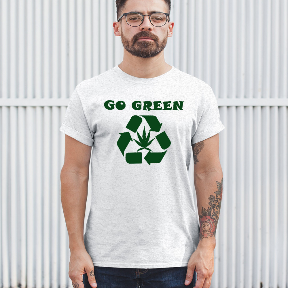 Embrace the green lifestyle with this "Go Green" design, a perfect blend of cannabis culture and environmental awareness. The design showcases a recycling symbol with a cannabis leaf, making it ideal for those who are passionate about Mary Jane and sustainable living. Whether you're chilling with your buds or advocating for legalizing pot, this design captures the essence of a relaxed, eco-conscious lifestyle. Show your love for the environment and cannabis with this unique and humorous design.