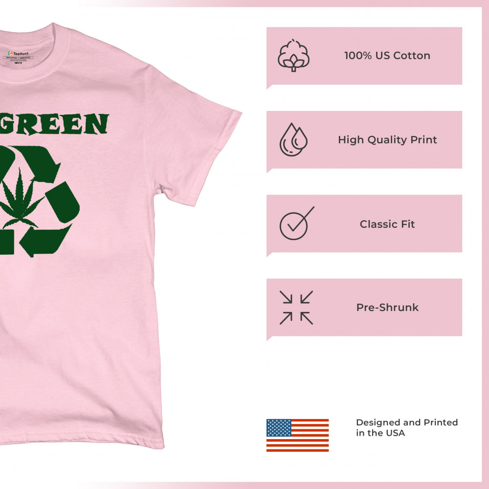 "Go Green" design combining a recycling symbol with a cannabis leaf. Perfect for those who love Mary Jane, sustainable living, and stoned humor.