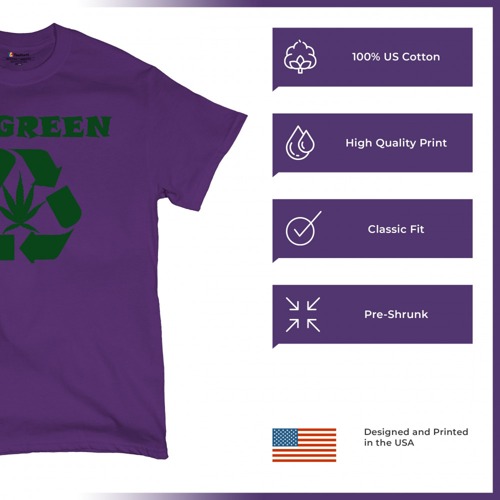 "Go Green" design combining a recycling symbol with a cannabis leaf. Perfect for those who love Mary Jane, sustainable living, and stoned humor.
