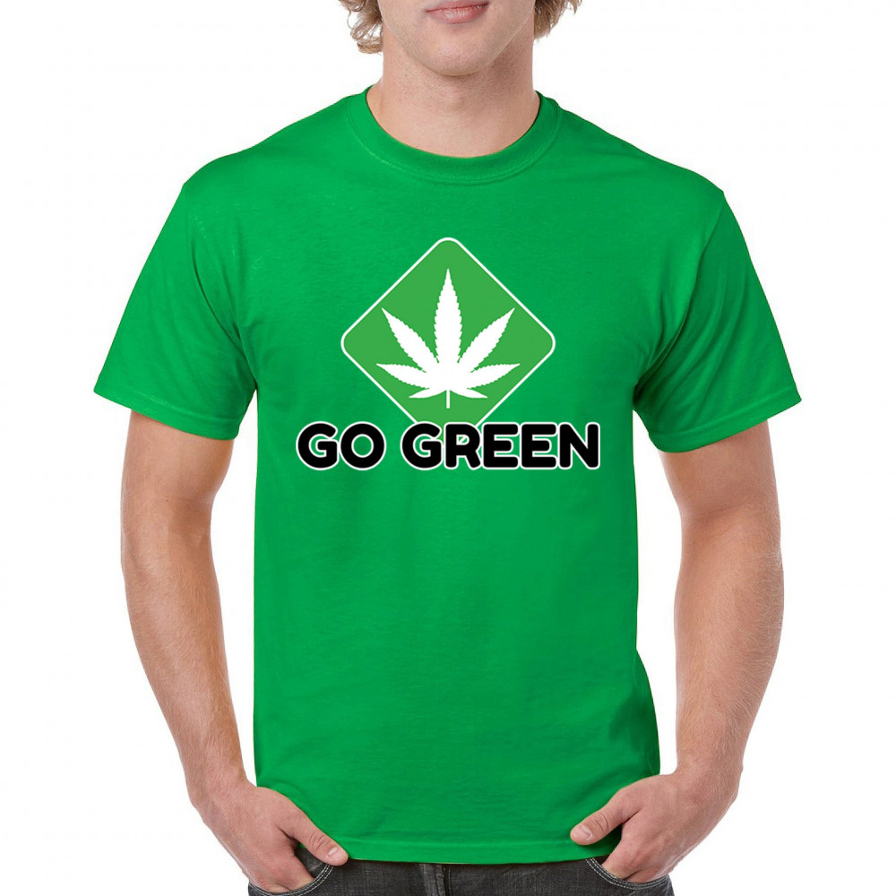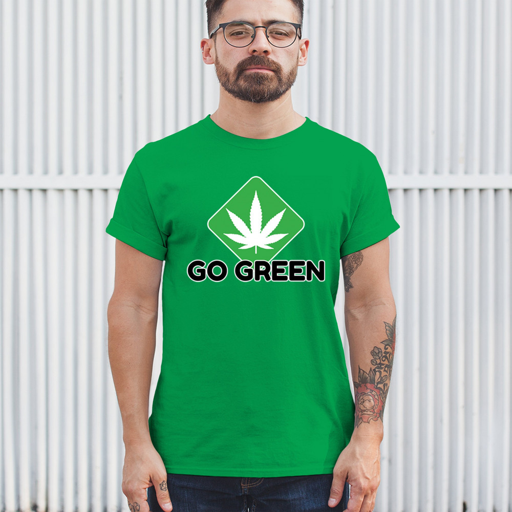 Bold Go Green design with cannabis leaf icon. Perfect for 420 fans, eco-conscious wearers, stoners, and marijuana advocates.