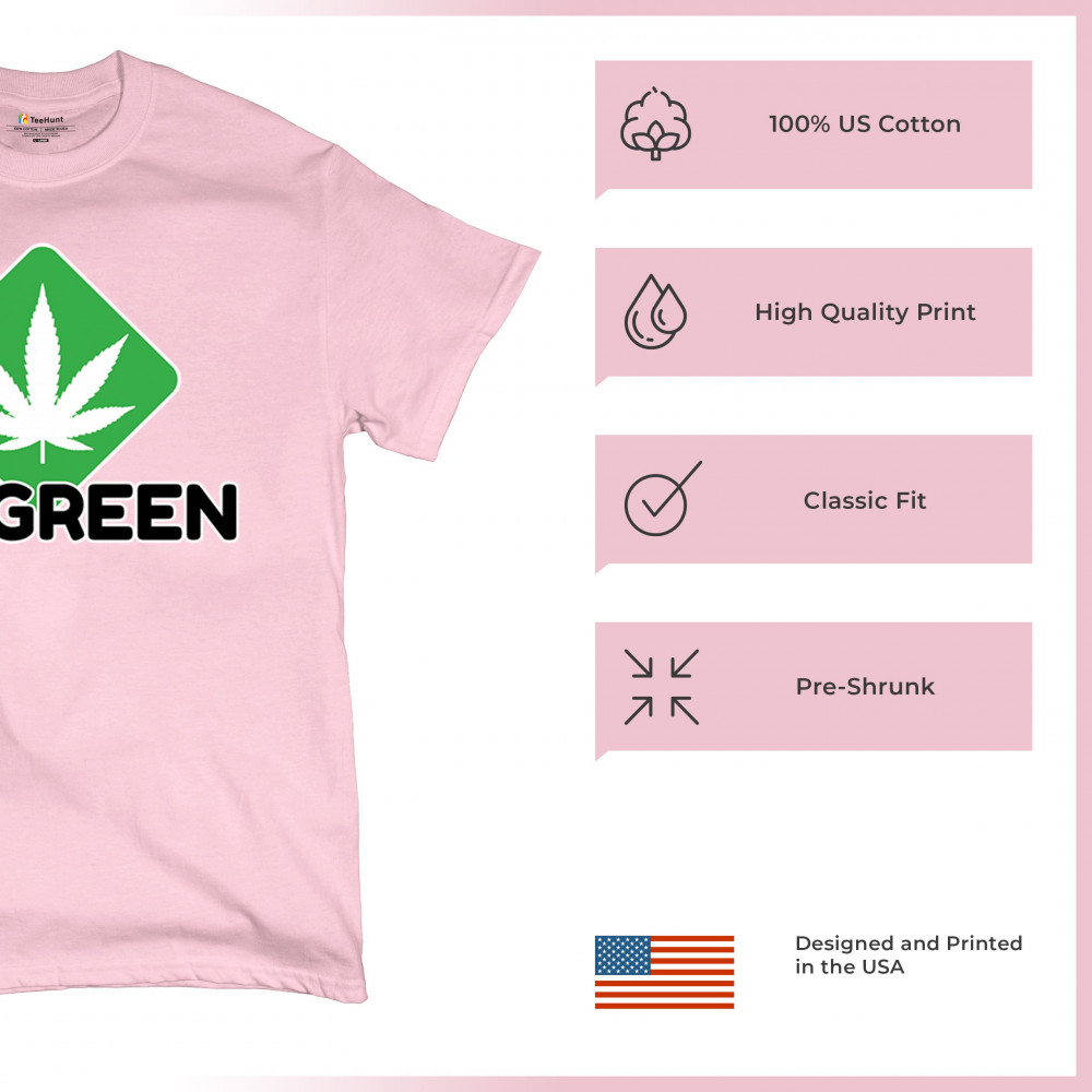 Bold Go Green design with cannabis leaf icon. Perfect for 420 fans, eco-conscious wearers, stoners, and marijuana advocates.