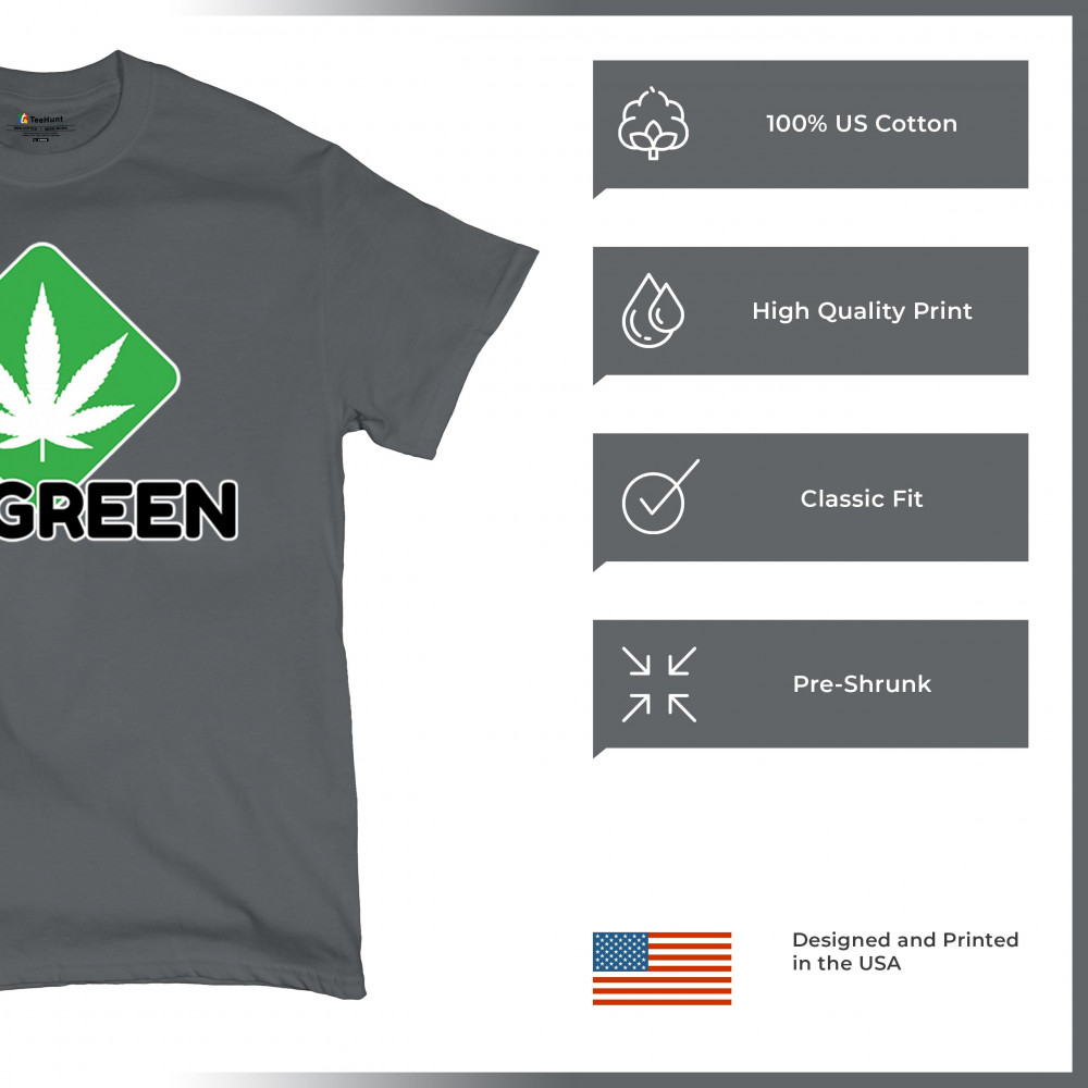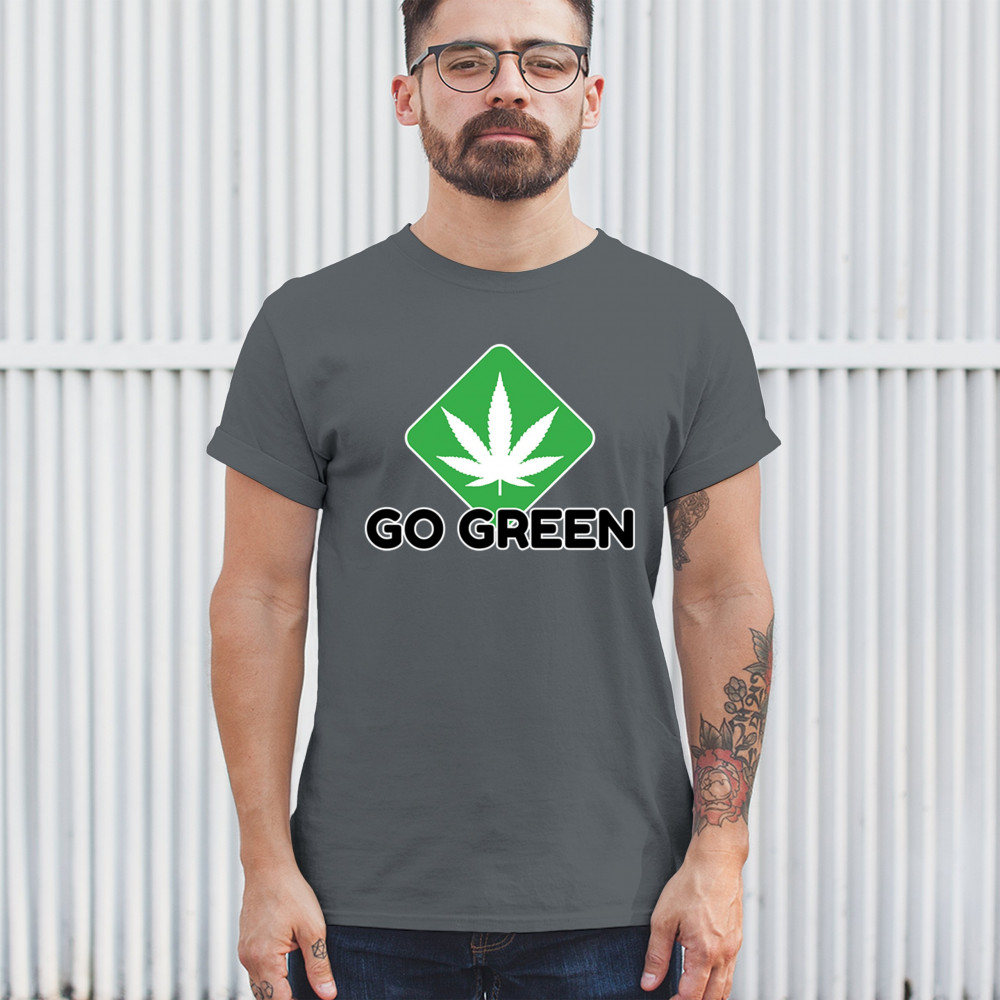Bold Go Green design with cannabis leaf icon. Perfect for 420 fans, eco-conscious wearers, stoners, and marijuana advocates.