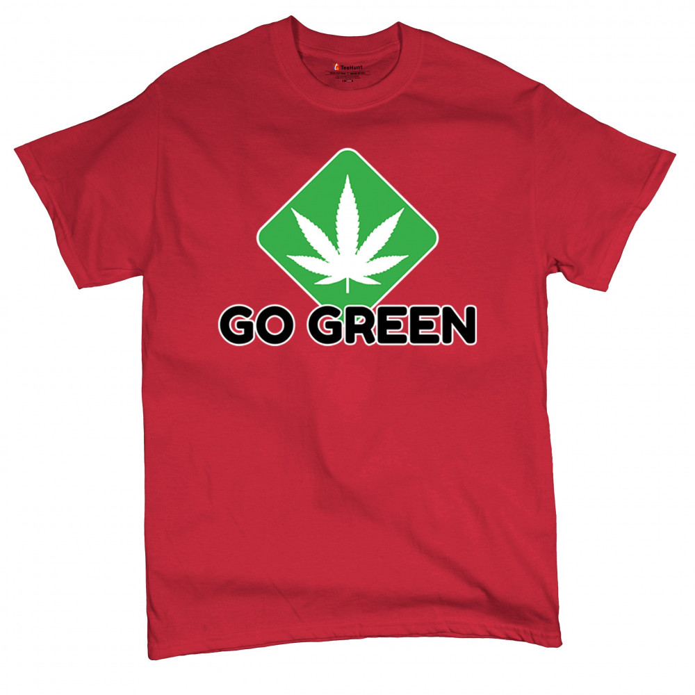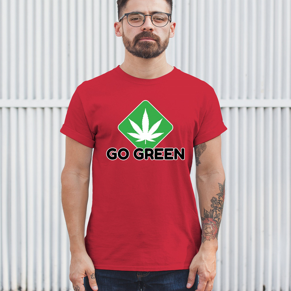 Bold Go Green design with cannabis leaf icon. Perfect for 420 fans, eco-conscious wearers, stoners, and marijuana advocates.