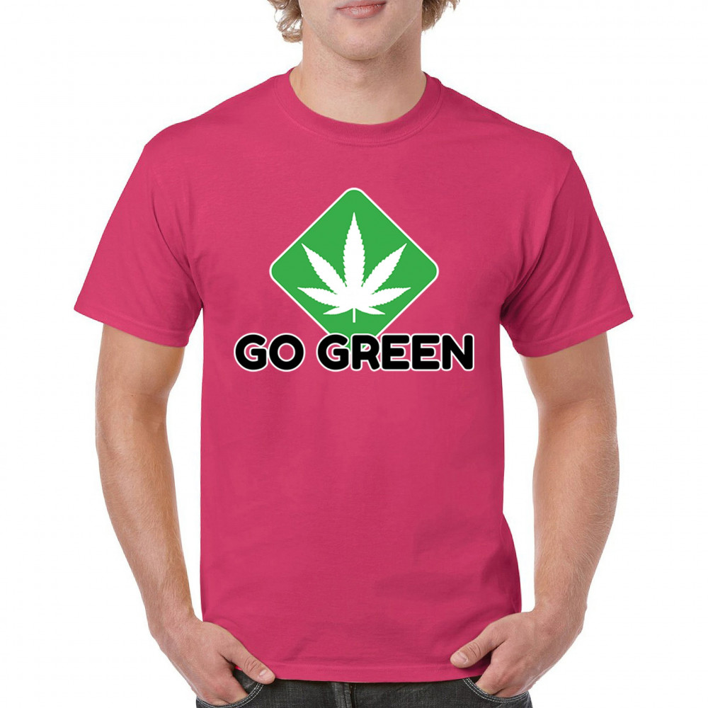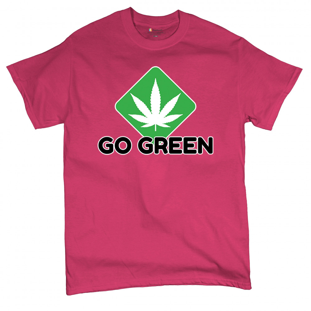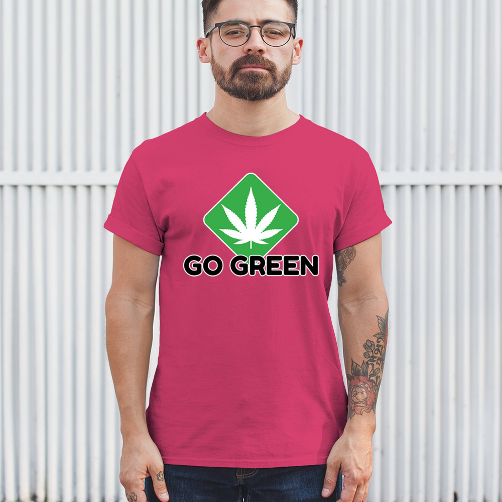 Bold Go Green design with cannabis leaf icon. Perfect for 420 fans, eco-conscious wearers, stoners, and marijuana advocates.