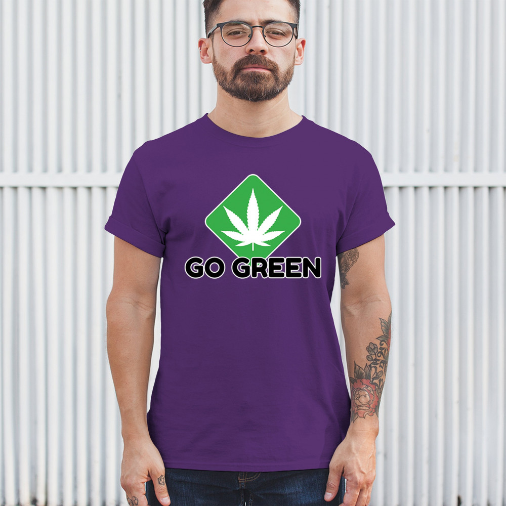 Bold Go Green design with cannabis leaf icon. Perfect for 420 fans, eco-conscious wearers, stoners, and marijuana advocates.