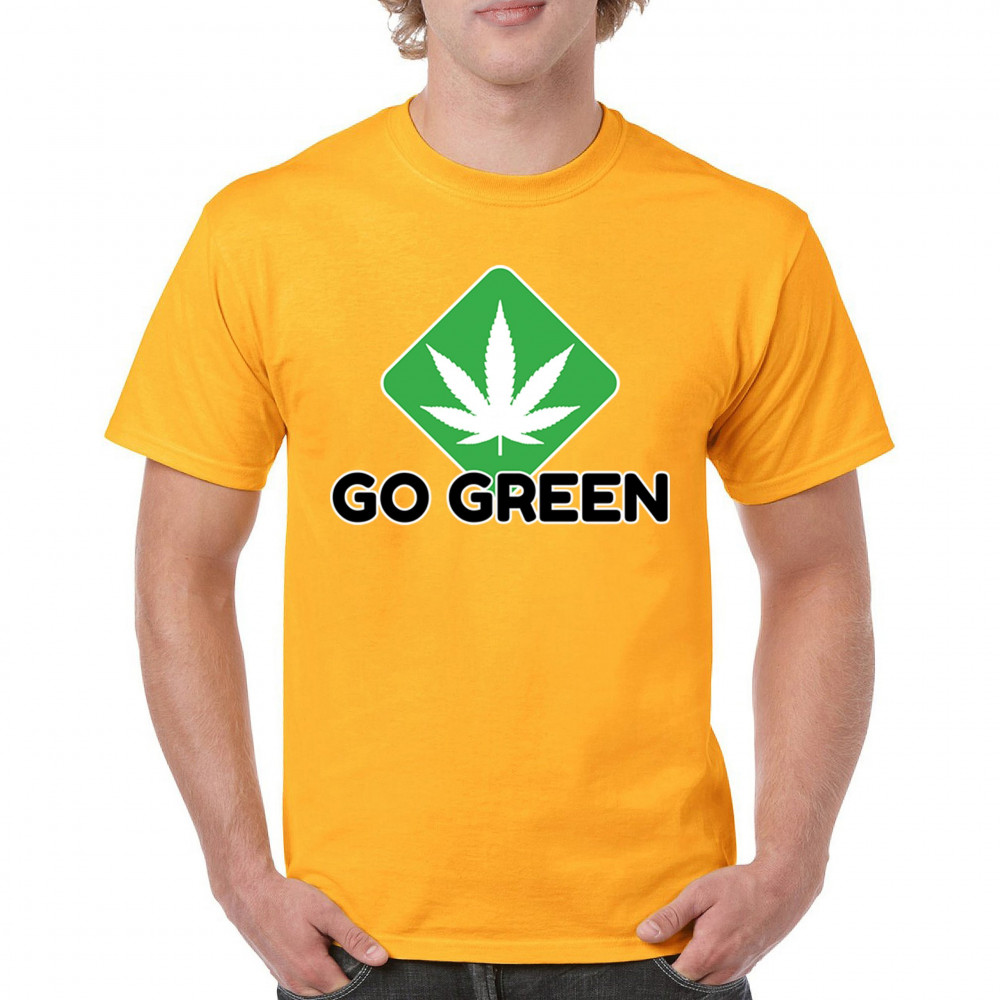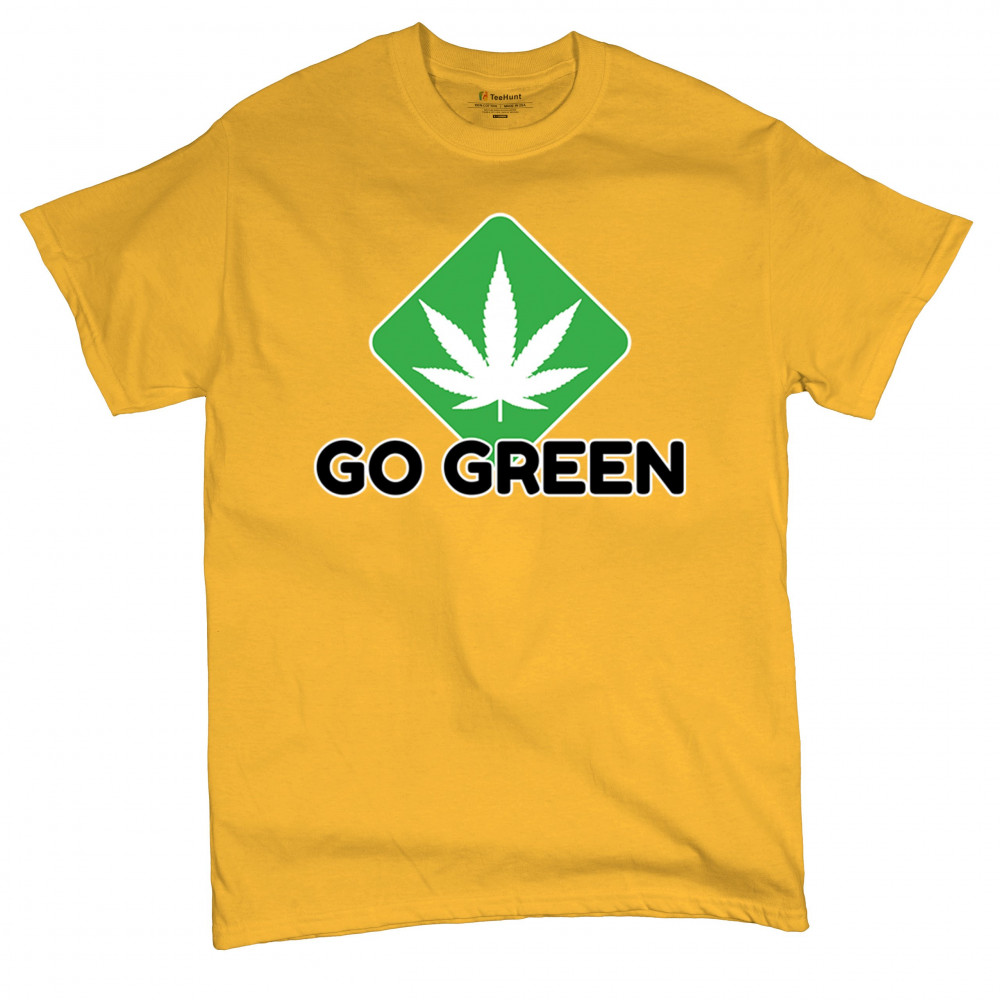 Bold Go Green design with cannabis leaf icon. Perfect for 420 fans, eco-conscious wearers, stoners, and marijuana advocates.