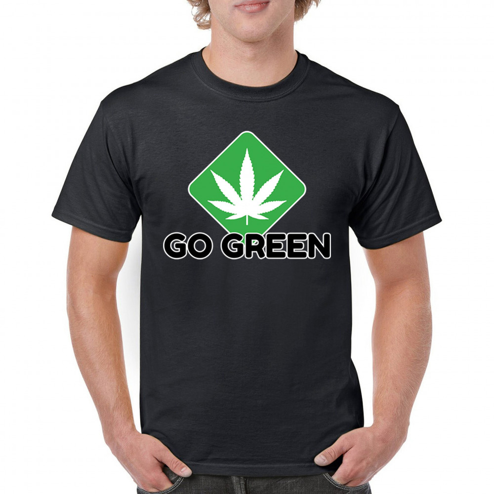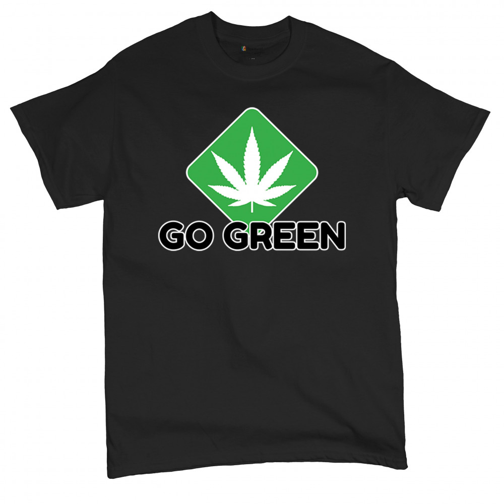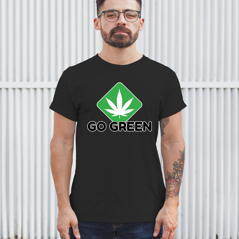 Bold Go Green design with cannabis leaf icon. Perfect for 420 fans, eco-conscious wearers, stoners, and marijuana advocates.