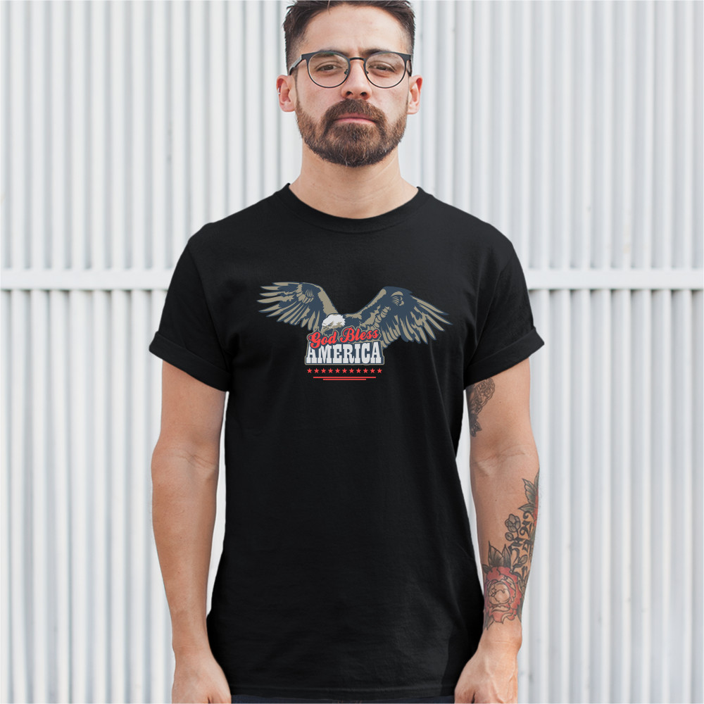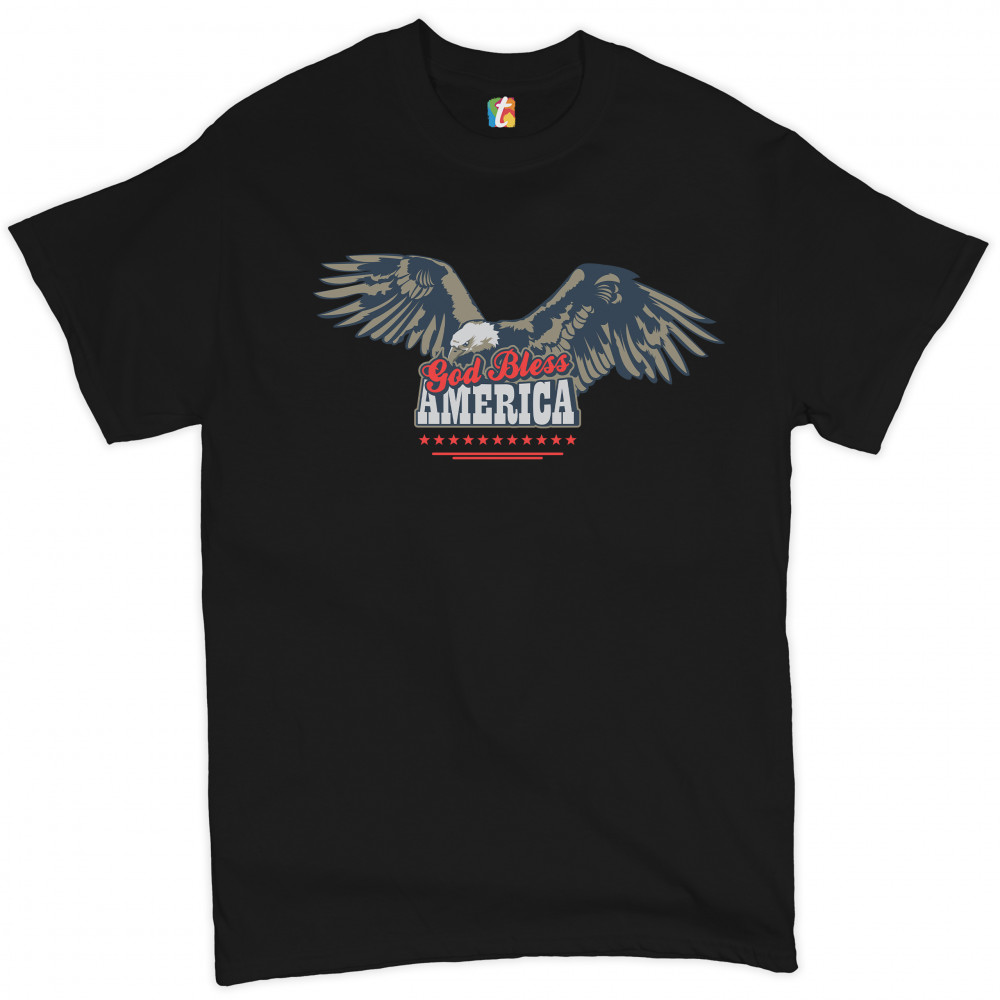 GOD BLESS AMERICA t-shirt 4th of july bald eagle patriotic men's tee black