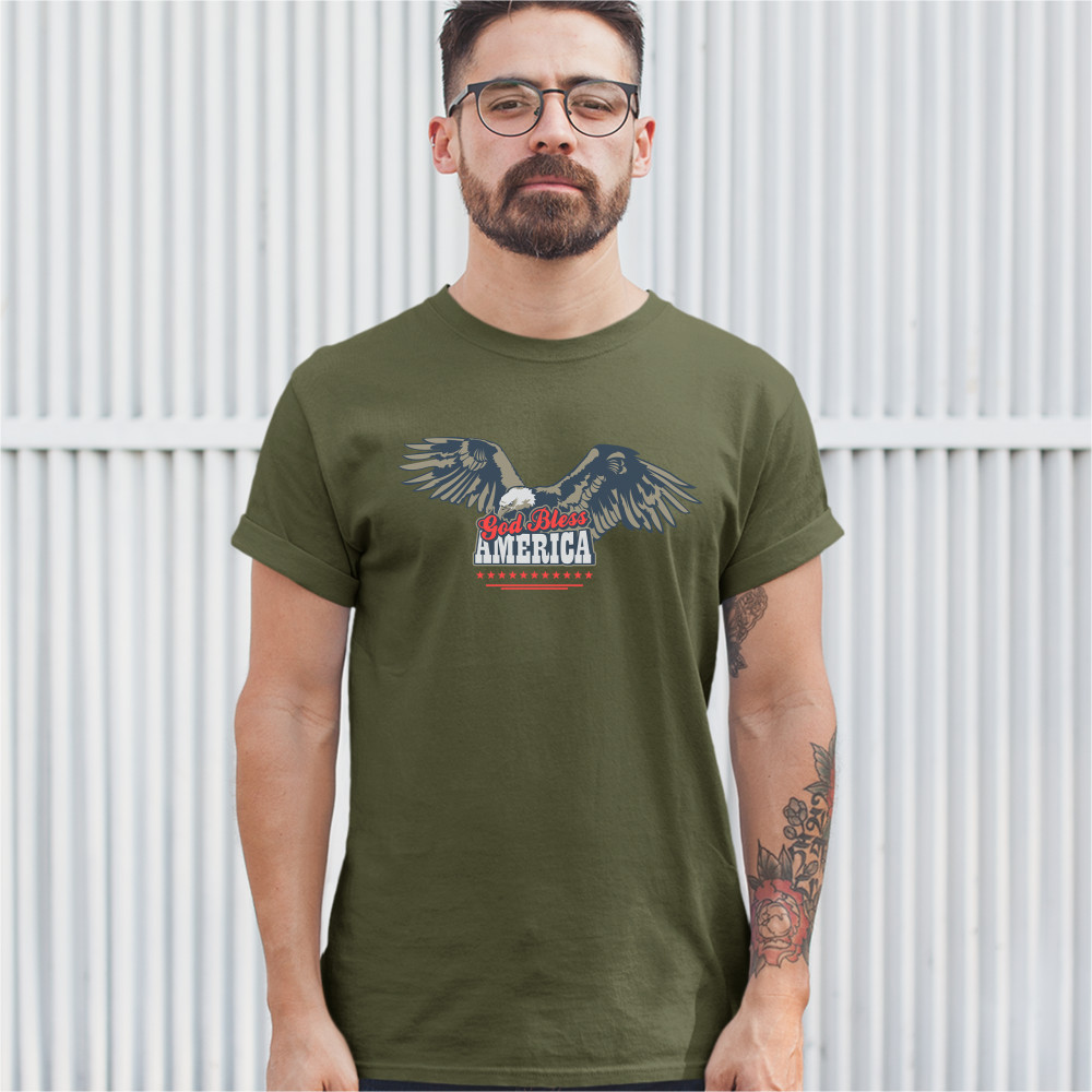 GOD BLESS AMERICA t-shirt 4th of july bald eagle patriotic men's tee military green