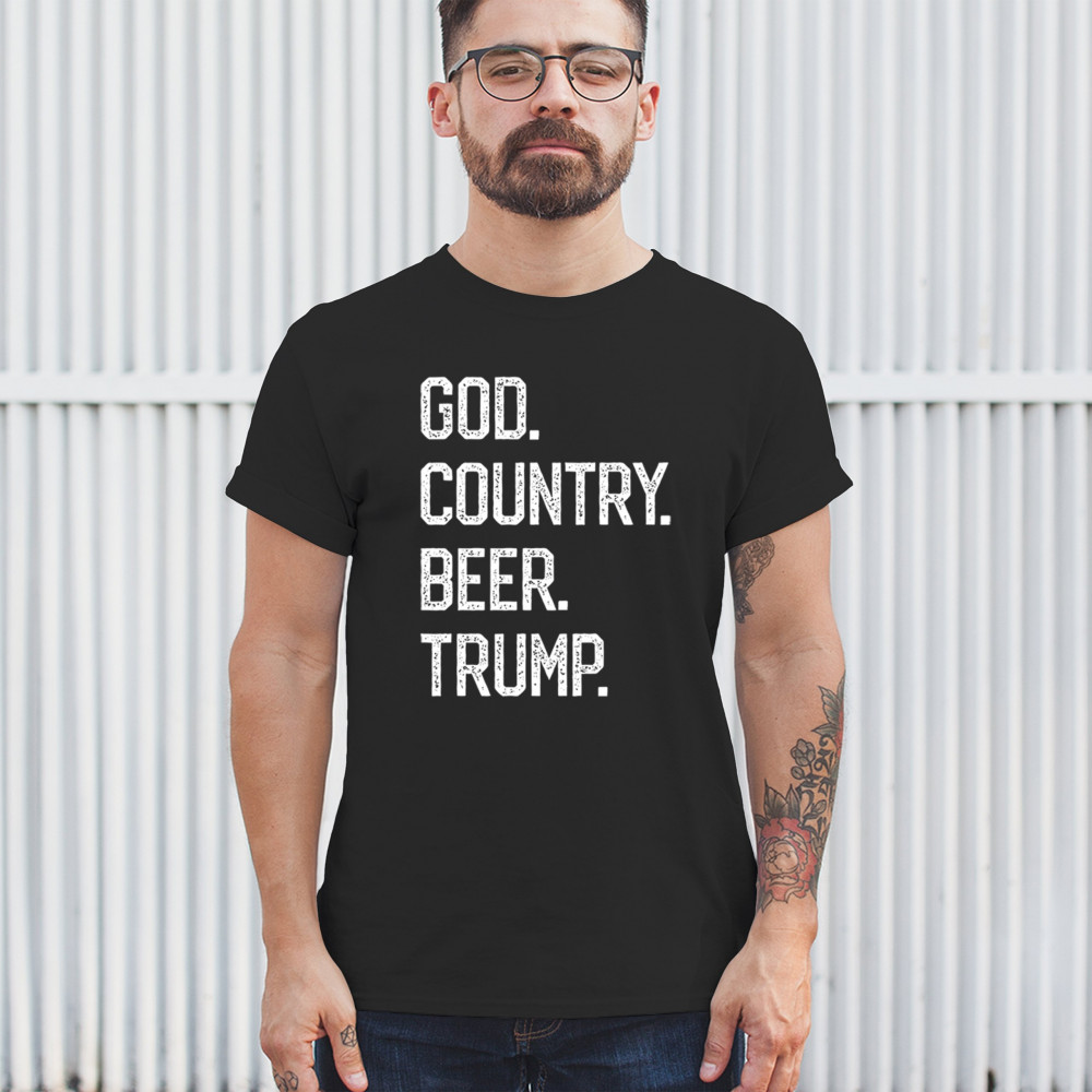 GOD COUNTRY BEER TRUMP t-shirt maga 2024 america first conservative men's tee black