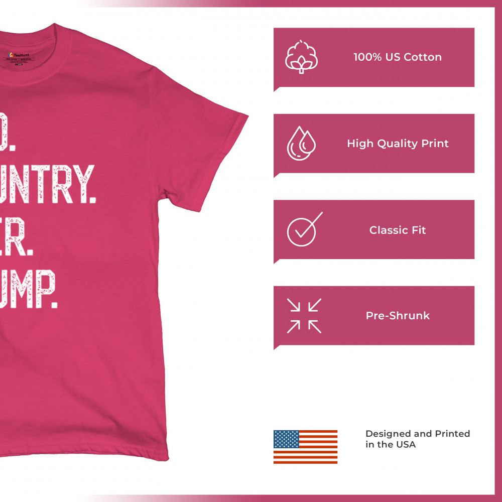 Celebrate God, country, and Trump with this bold design. Perfect for Republicans and America First supporters who stand for freedom and values.