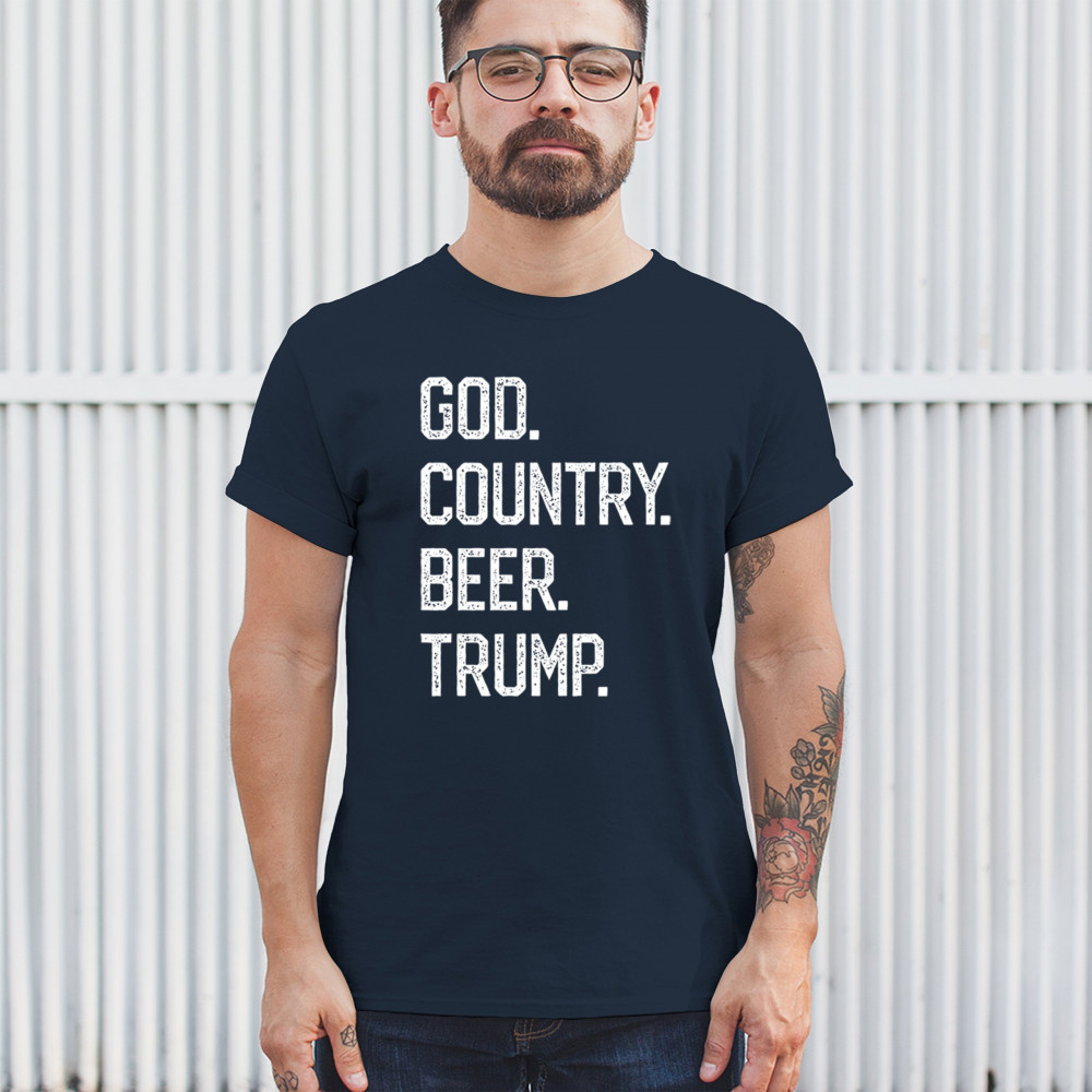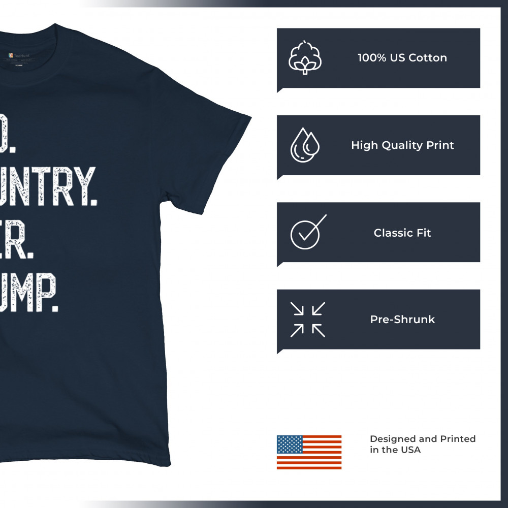 Celebrate God, country, and Trump with this bold design. Perfect for Republicans and America First supporters who stand for freedom and values.