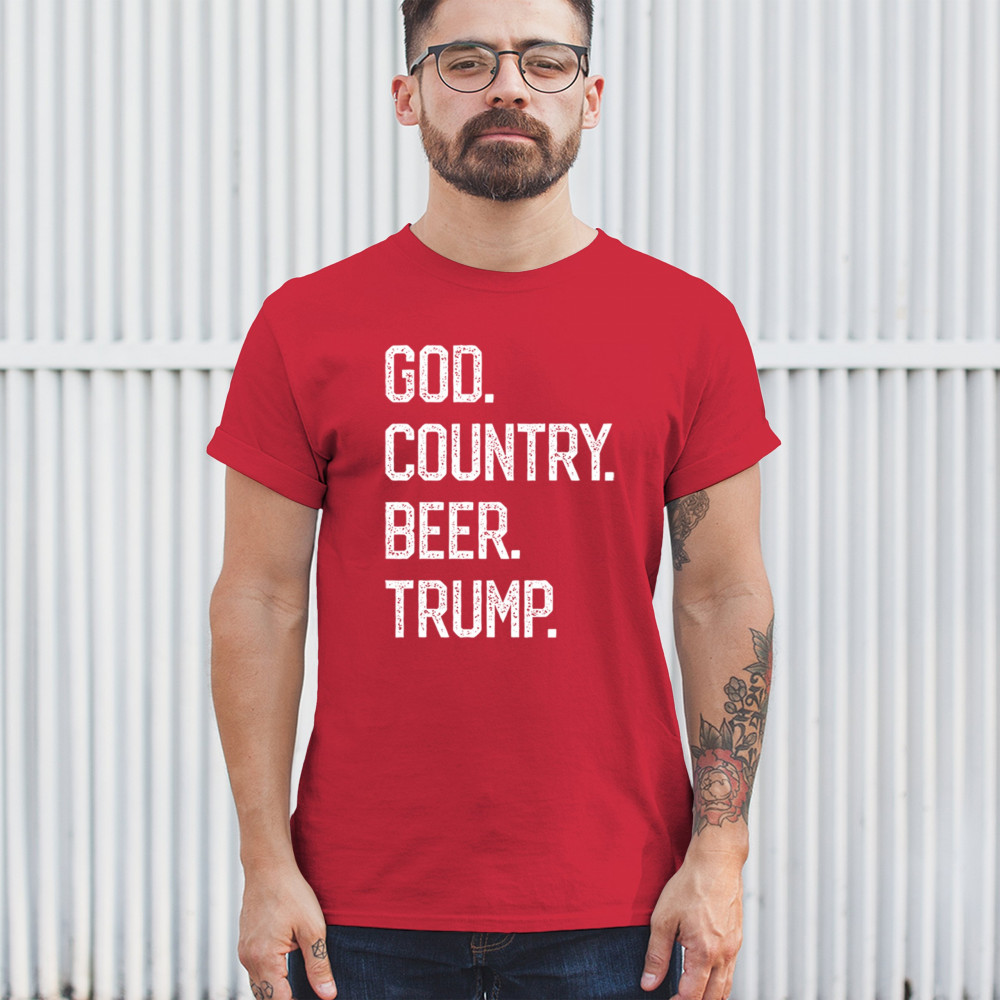 Celebrate God, country, and Trump with this bold design. Perfect for Republicans and America First supporters who stand for freedom and values.