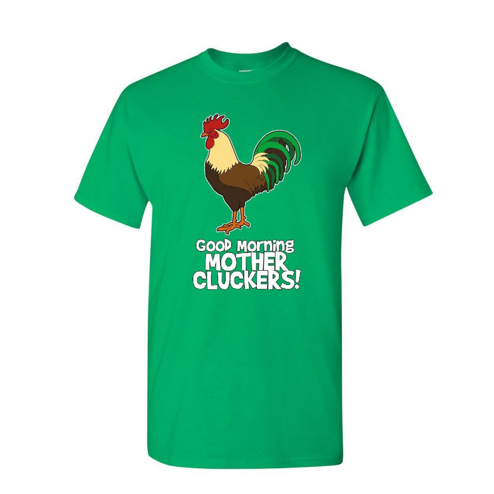 GOOD MORNING MOTHER CLUCKERS t-shirt funny adult humor rooster mens tee shirt green