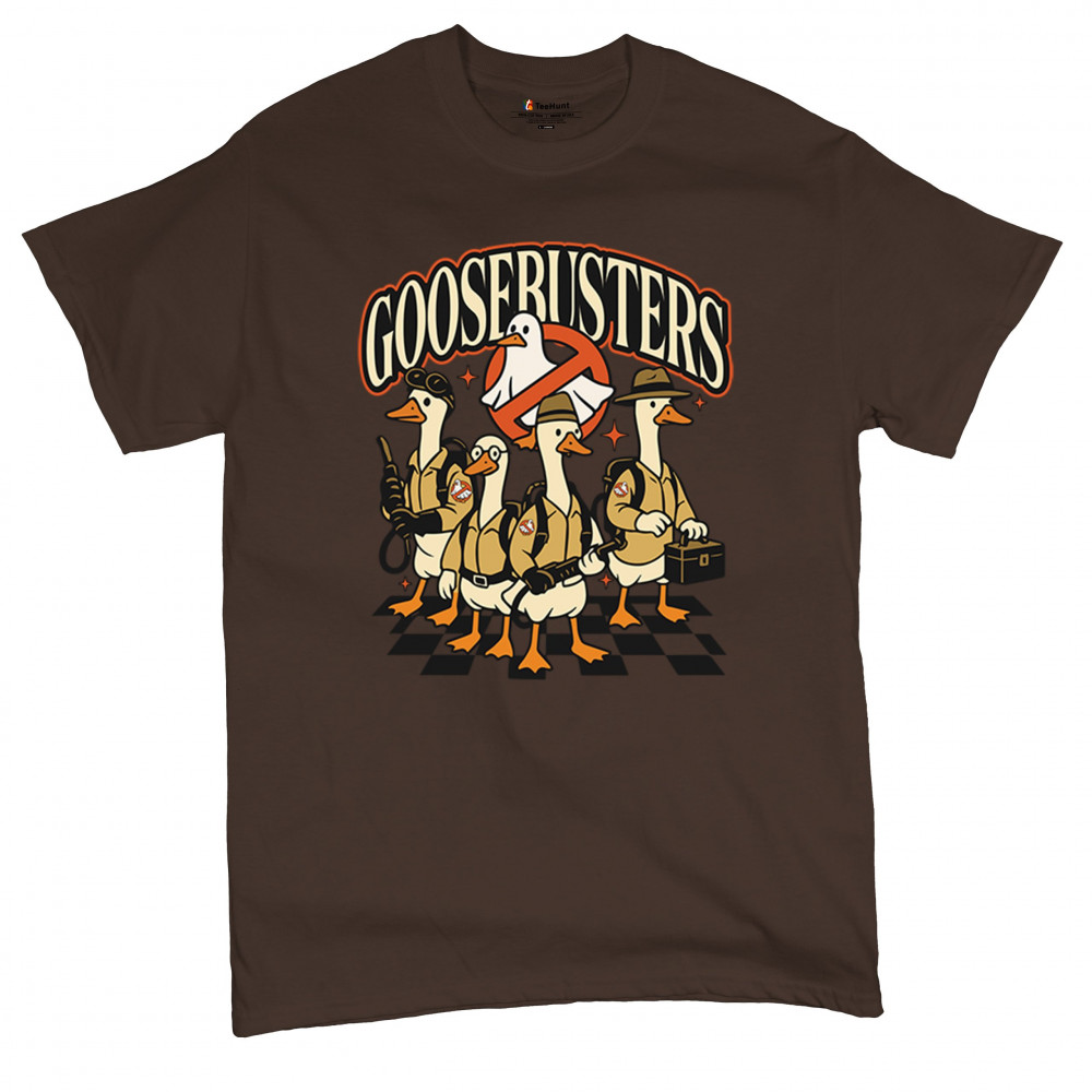 Celebrate October 31 with our Goosebusters shirt—a perfect mix of spooky and parody fun. This halloween goose design combines silly goose humor with ghost-busting style, making it a must-have for fans of funny goose shirts and spooky goose shirts. Ideal as a goose costume tee, goose parody shirt, or comedy bird shirt, this silly design adds Trick or Treat laughter to any haunted house or scary night.