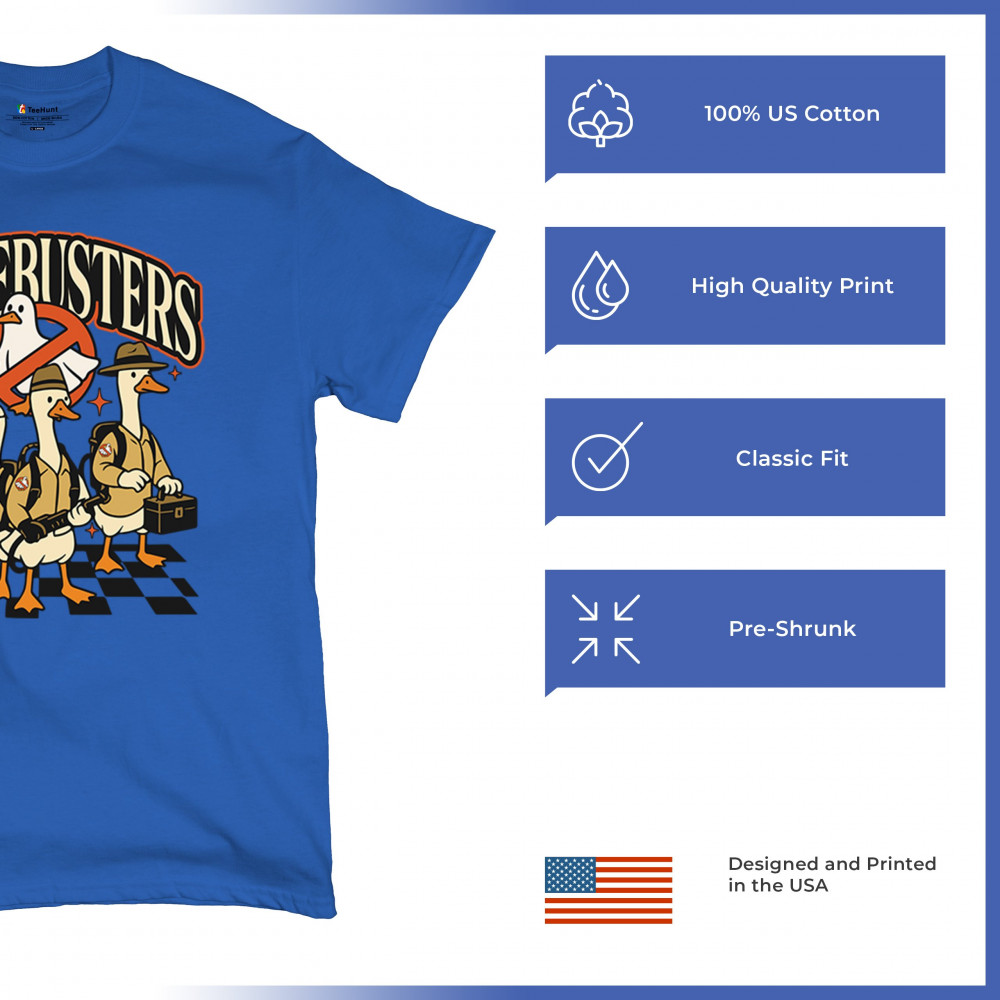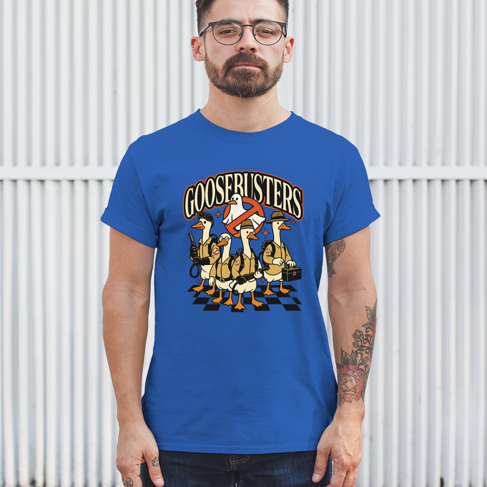 Celebrate October 31 with our Goosebusters shirt—a perfect mix of spooky and parody fun. This halloween goose design combines silly goose humor with ghost-busting style, making it a must-have for fans of funny goose shirts and spooky goose shirts. Ideal as a goose costume tee, goose parody shirt, or comedy bird shirt, this silly design adds Trick or Treat laughter to any haunted house or scary night.