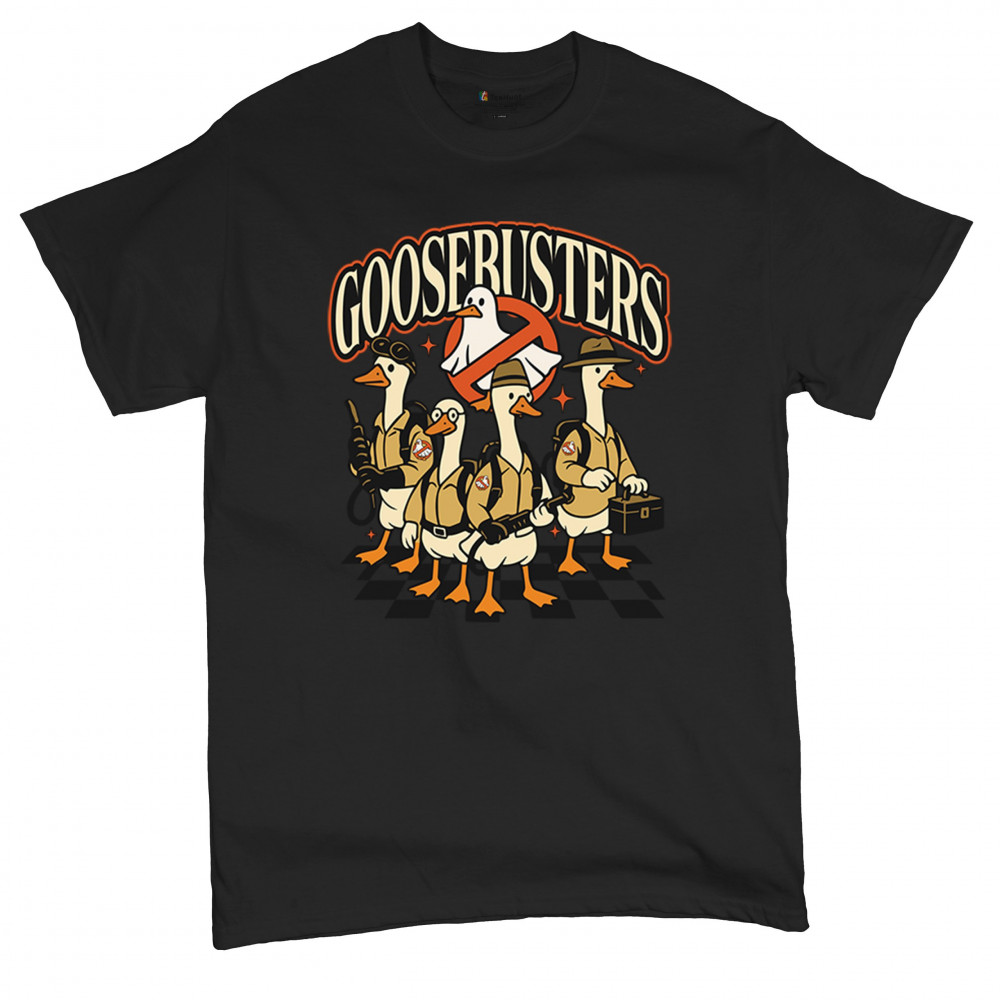 Celebrate October 31 with our Goosebusters shirt—a perfect mix of spooky and parody fun. This halloween goose design combines silly goose humor with ghost-busting style, making it a must-have for fans of funny goose shirts and spooky goose shirts. Ideal as a goose costume tee, goose parody shirt, or comedy bird shirt, this silly design adds Trick or Treat laughter to any haunted house or scary night.