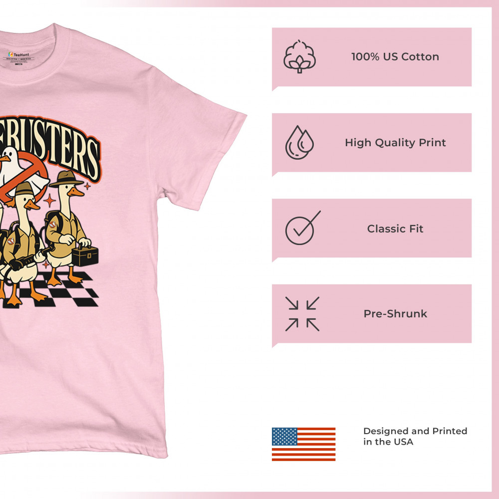 Celebrate October 31 with our Goosebusters shirt—a perfect mix of spooky and parody fun. This halloween goose design combines silly goose humor with ghost-busting style, making it a must-have for fans of funny goose shirts and spooky goose shirts. Ideal as a goose costume tee, goose parody shirt, or comedy bird shirt, this silly design adds Trick or Treat laughter to any haunted house or scary night.
