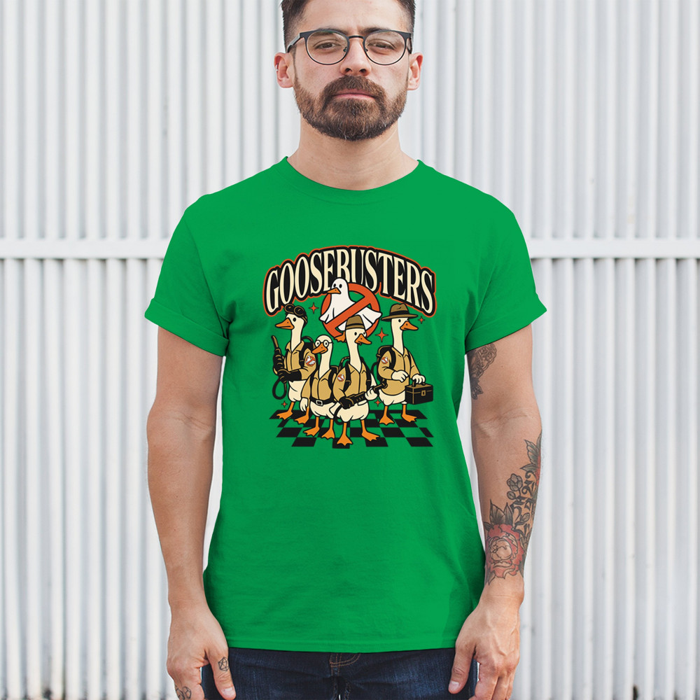 Celebrate October 31 with our Goosebusters shirt—a perfect mix of spooky and parody fun. This halloween goose design combines silly goose humor with ghost-busting style, making it a must-have for fans of funny goose shirts and spooky goose shirts. Ideal as a goose costume tee, goose parody shirt, or comedy bird shirt, this silly design adds Trick or Treat laughter to any haunted house or scary night.