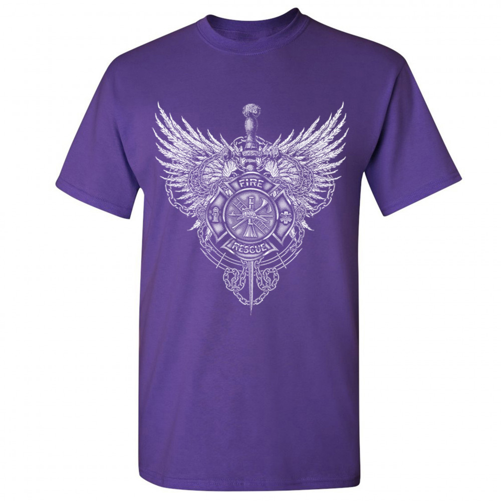 GOTHIC FIREFIGHTER EMBLEM t-shirt courage honor sacrifice men's tee purple