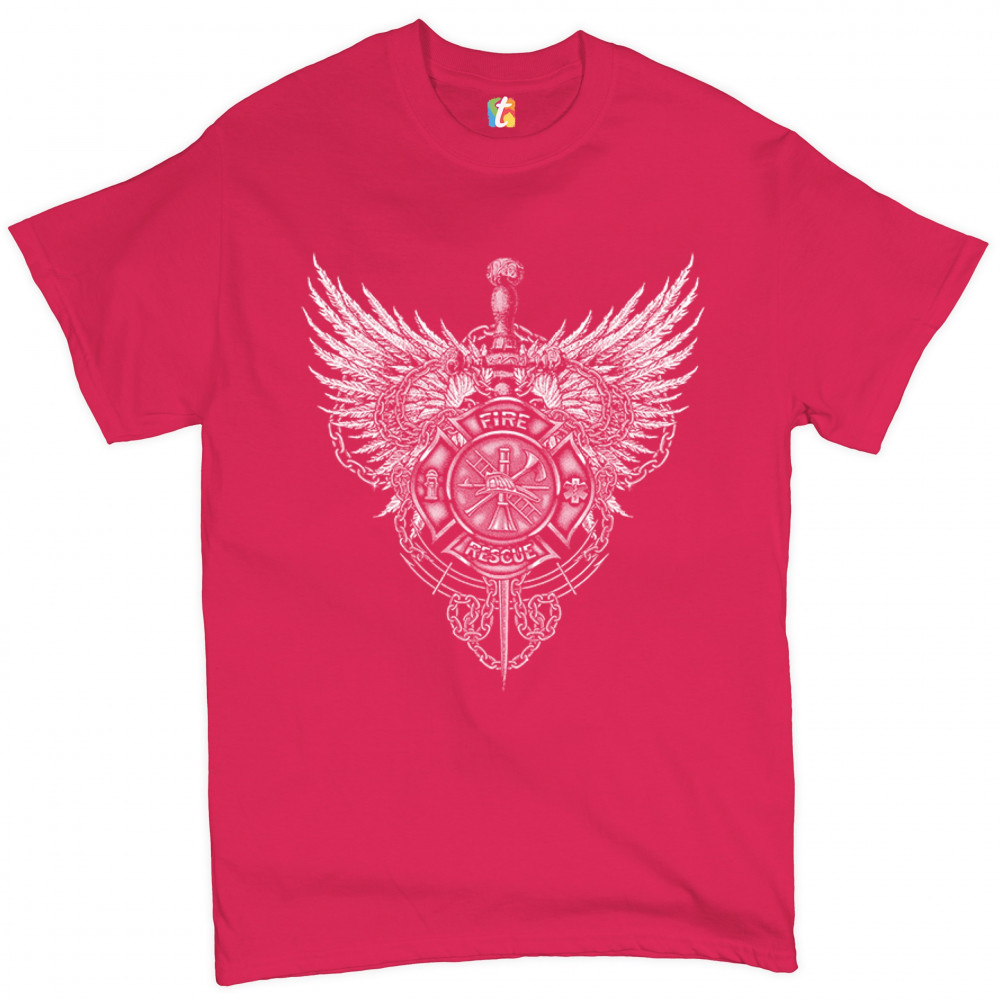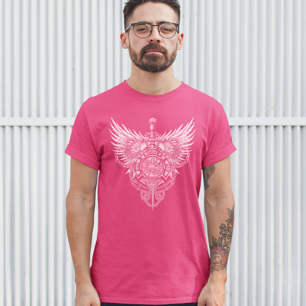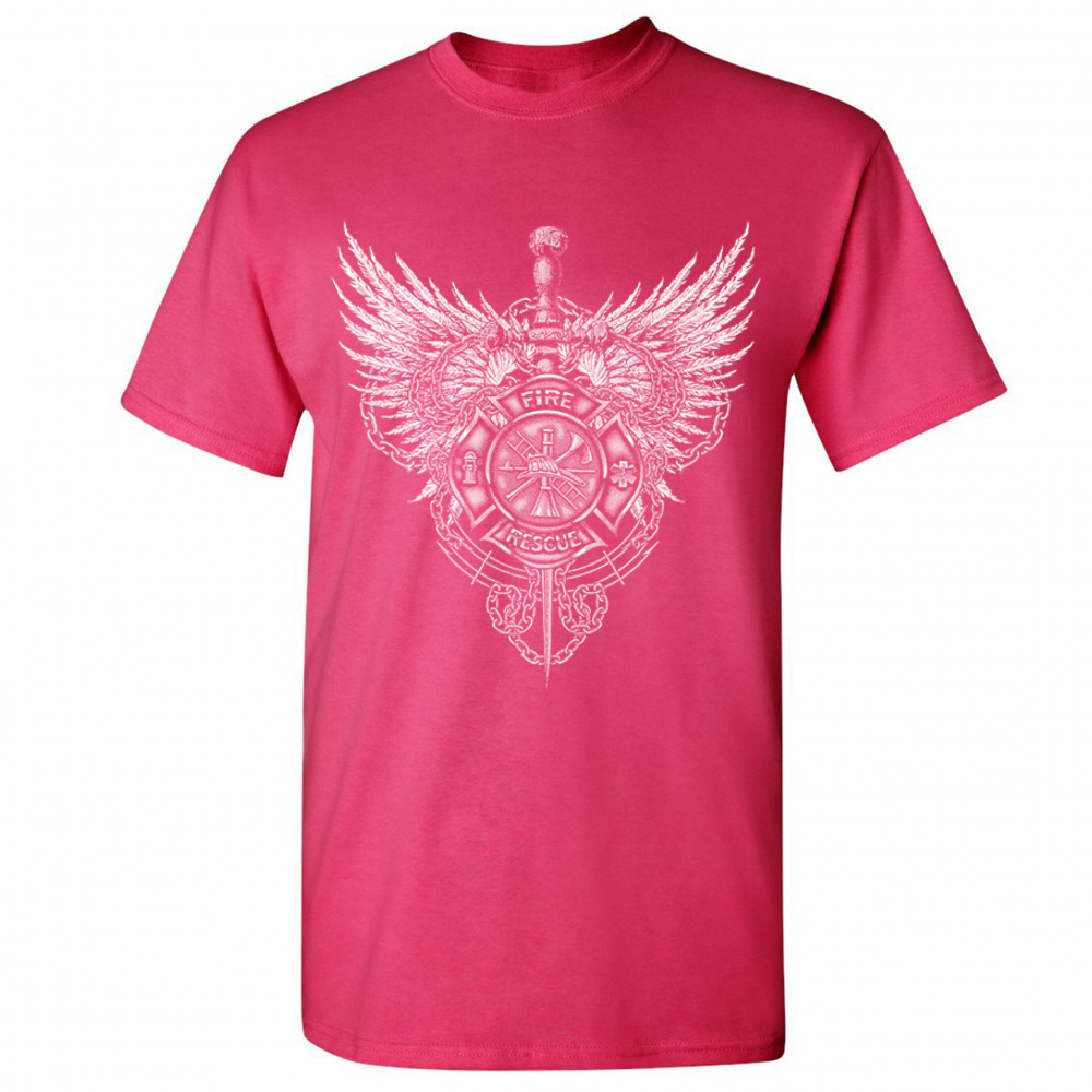 GOTHIC FIREFIGHTER EMBLEM t-shirt courage honor sacrifice men's tee hot pink