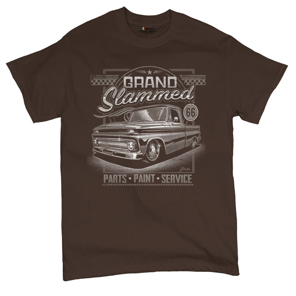 Step back in time with our Grand Slammed vintage truck design, perfect for fans of classic American automotive culture. This shirt showcases a beautifully detailed illustration of a custom truck, making it a standout piece for any car enthusiast. Whether you're attending a car show, hanging out in the garage, or just enjoying a casual day out, this shirt will keep you comfortable and stylish. It's an excellent gift for truck lovers, hot rod aficionados, and anyone with a love for vintage cars. Crafted from premium materials, this shirt offers both durability and softness. Add this unique design to your collection and celebrate the golden era of custom trucks.