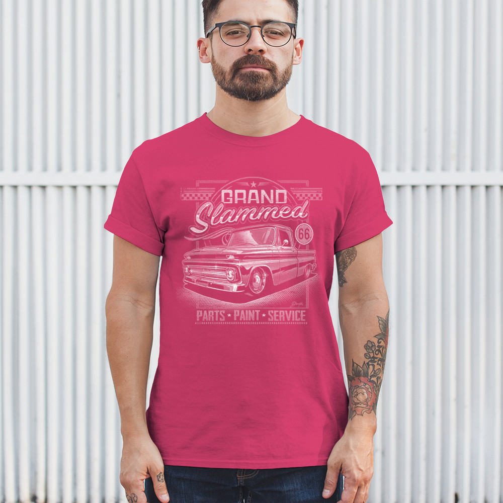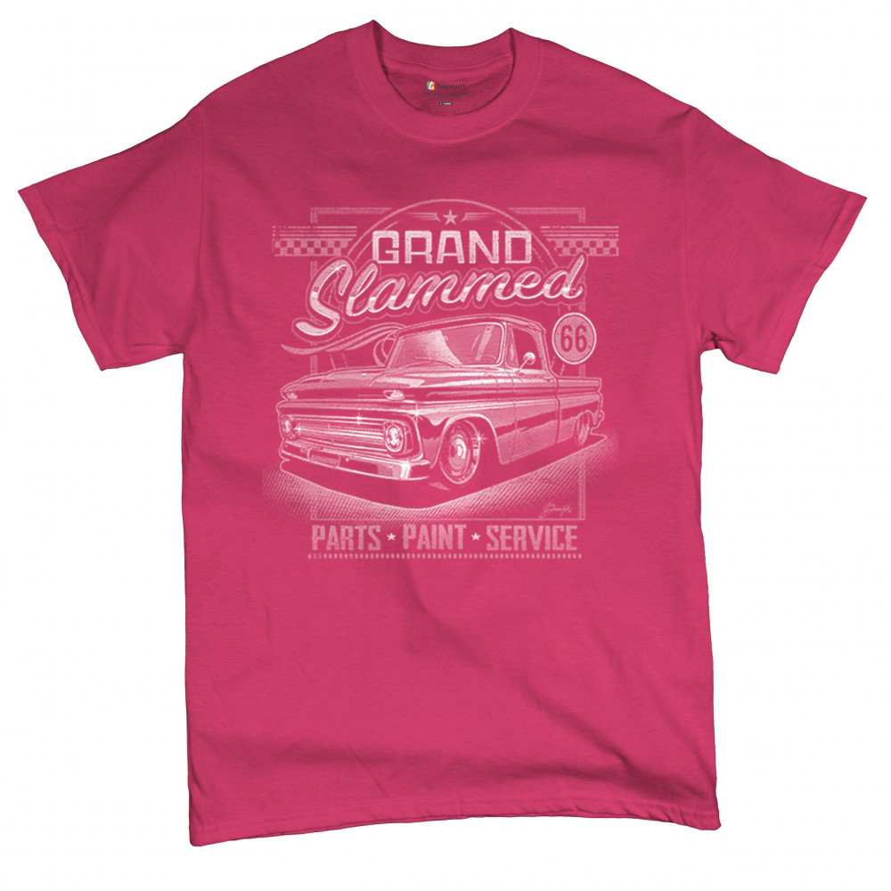 Step back in time with our Grand Slammed vintage truck design, perfect for fans of classic American automotive culture. This shirt showcases a beautifully detailed illustration of a custom truck, making it a standout piece for any car enthusiast. Whether you're attending a car show, hanging out in the garage, or just enjoying a casual day out, this shirt will keep you comfortable and stylish. It's an excellent gift for truck lovers, hot rod aficionados, and anyone with a love for vintage cars. Crafted from premium materials, this shirt offers both durability and softness. Add this unique design to your collection and celebrate the golden era of custom trucks.