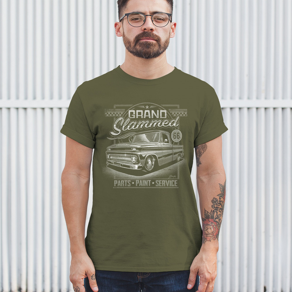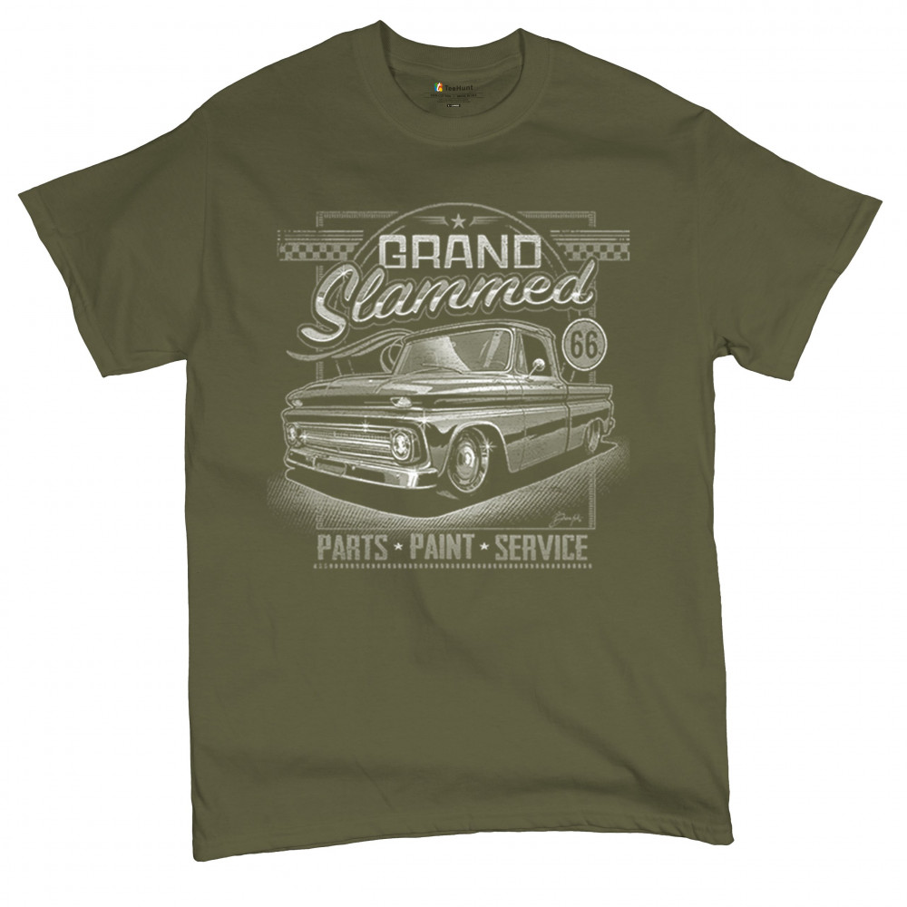 Step back in time with our Grand Slammed vintage truck design, perfect for fans of classic American automotive culture. This shirt showcases a beautifully detailed illustration of a custom truck, making it a standout piece for any car enthusiast. Whether you're attending a car show, hanging out in the garage, or just enjoying a casual day out, this shirt will keep you comfortable and stylish. It's an excellent gift for truck lovers, hot rod aficionados, and anyone with a love for vintage cars. Crafted from premium materials, this shirt offers both durability and softness. Add this unique design to your collection and celebrate the golden era of custom trucks.