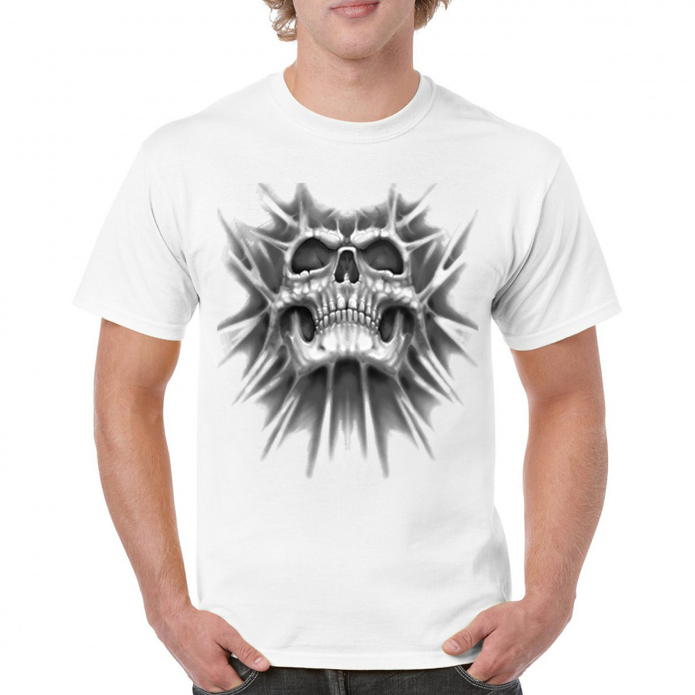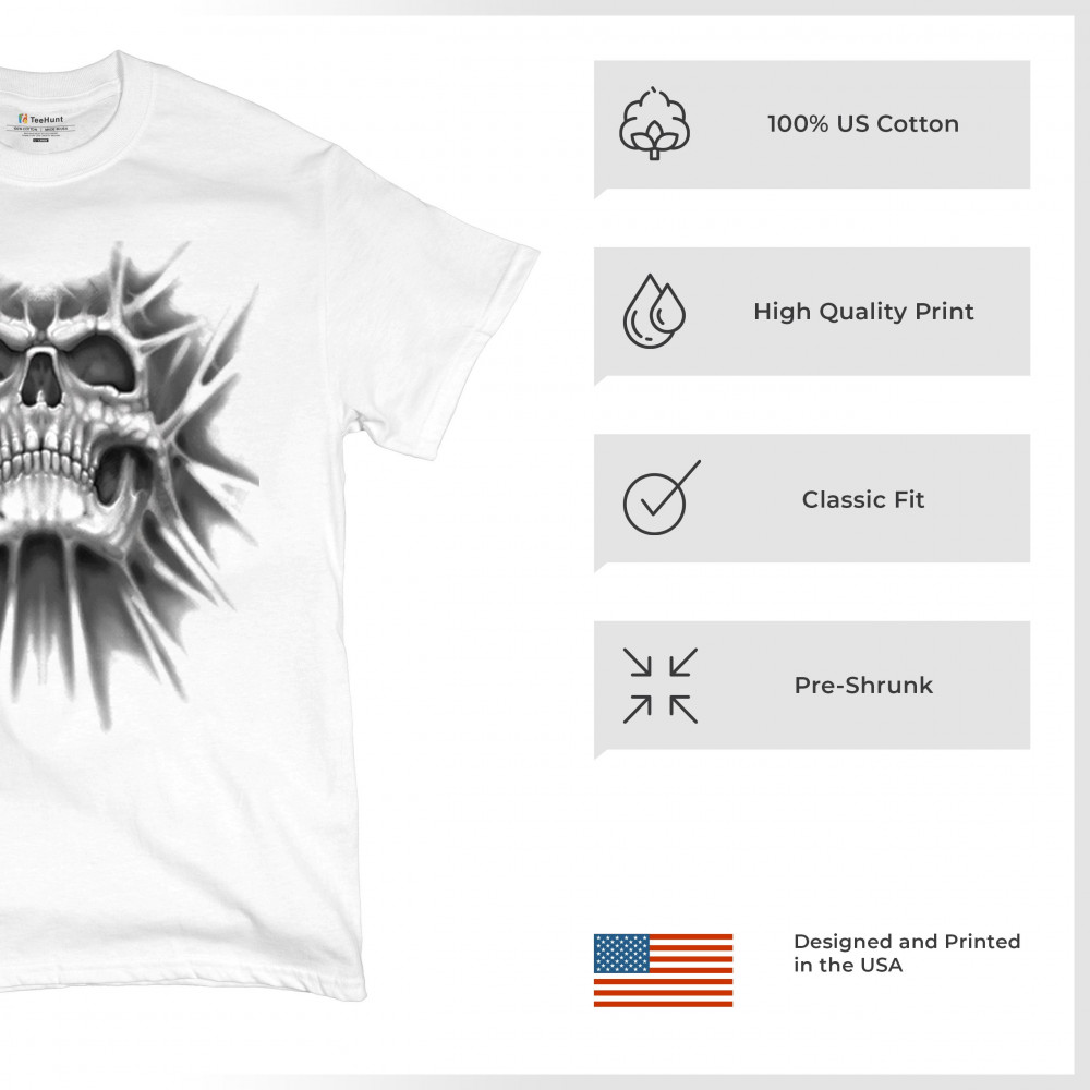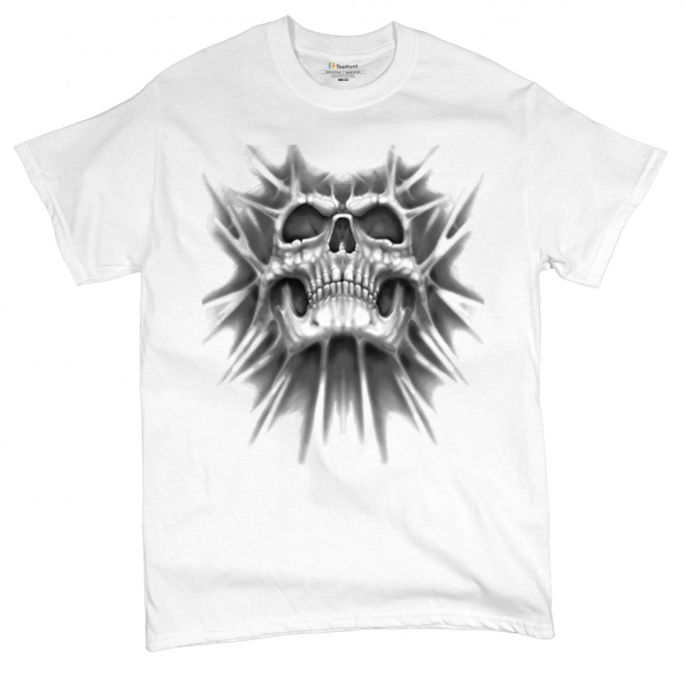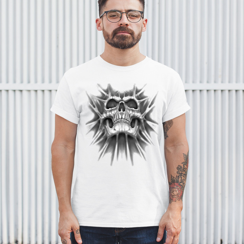 Gothic skull biker shirt with roots design. Perfect for Metalhead, Rock n Roll fans, edgy rebel fashion, and spooky Halloween vibes.